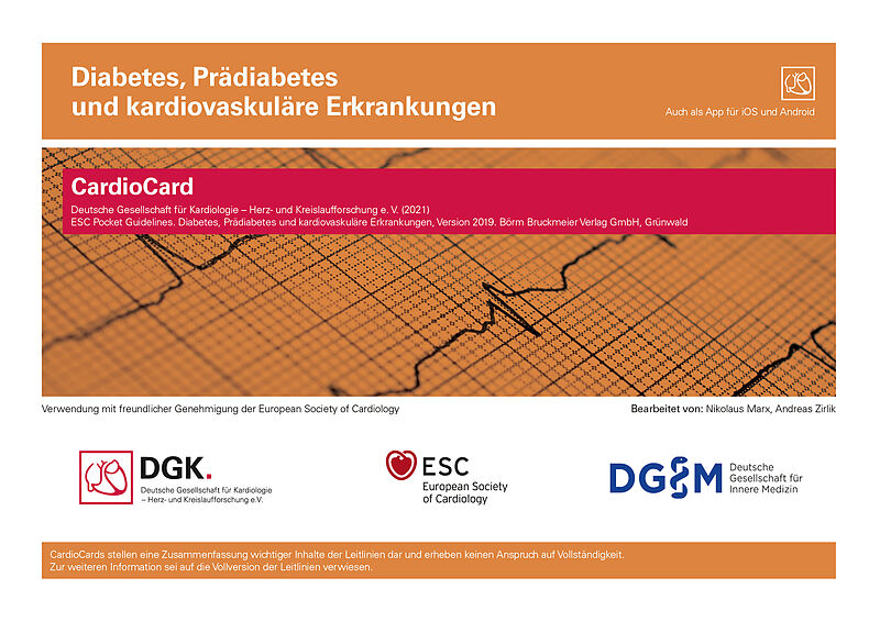 Die neuen CardioCards sind Zusammenstellungen der wichtigsten Inhalte der DGK-Pocket-Leitlinien zu unterschiedlichen Themen. Auf nur drei Inhaltsseiten sind übersichtlich und kompakt z.B. wichtige Algorithmen und Scores, neue Empfehlungen und aktuelle Therapie...