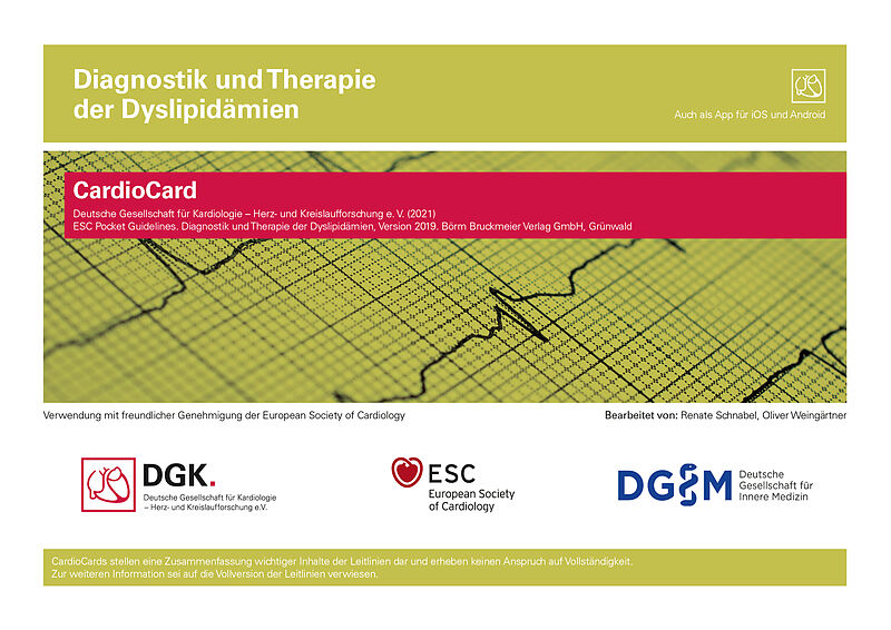Die neuen CardioCards sind Zusammenstellungen der wichtigsten Inhalte der DGK-Pocket-Leitlinien zu unterschiedlichen Themen. Auf nur drei Inhaltsseiten sind übersichtlich und kompakt z.B. wichtige Algorithmen und Scores, neue Empfehlungen und aktuelle Therapie...