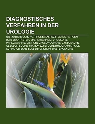 Quelle: Wikipedia. Seiten: 25. Kapitel: Urinuntersuchung, Prostataspezifisches Antigen, Blasenkatheter, Spermiogramm, Uroskopie, Phallografie, Miktionsurosonografie, Zystoskopie, Gleason-Score, Miktionszystourethrogramm, PCA3, Suprapubische Blasenpunktion, Ure...