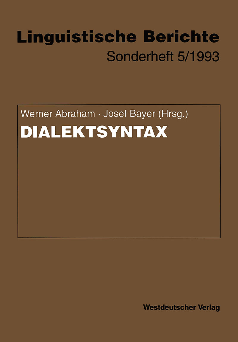 Autorentext Dr. Werner Abraham lehrt am germanistischen Institut der Universität Groningen, Niederlande. Dr. Josef Bayer ist z. Z. Mitarbeiter am Institut für Sprachwissenschaft der Universität Wien. Klappentext Das Studium von Dialekten stellt einen wichtigen...