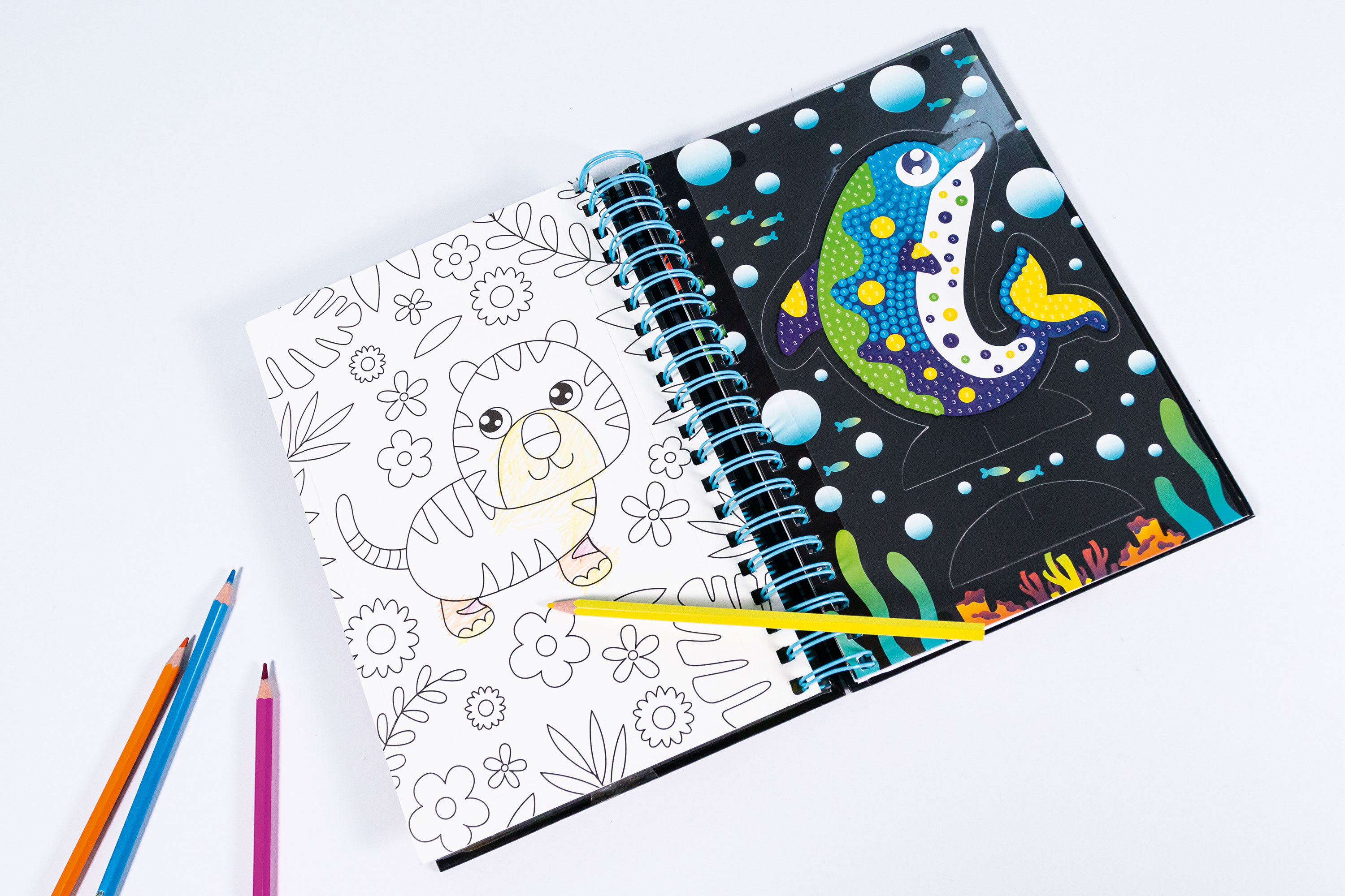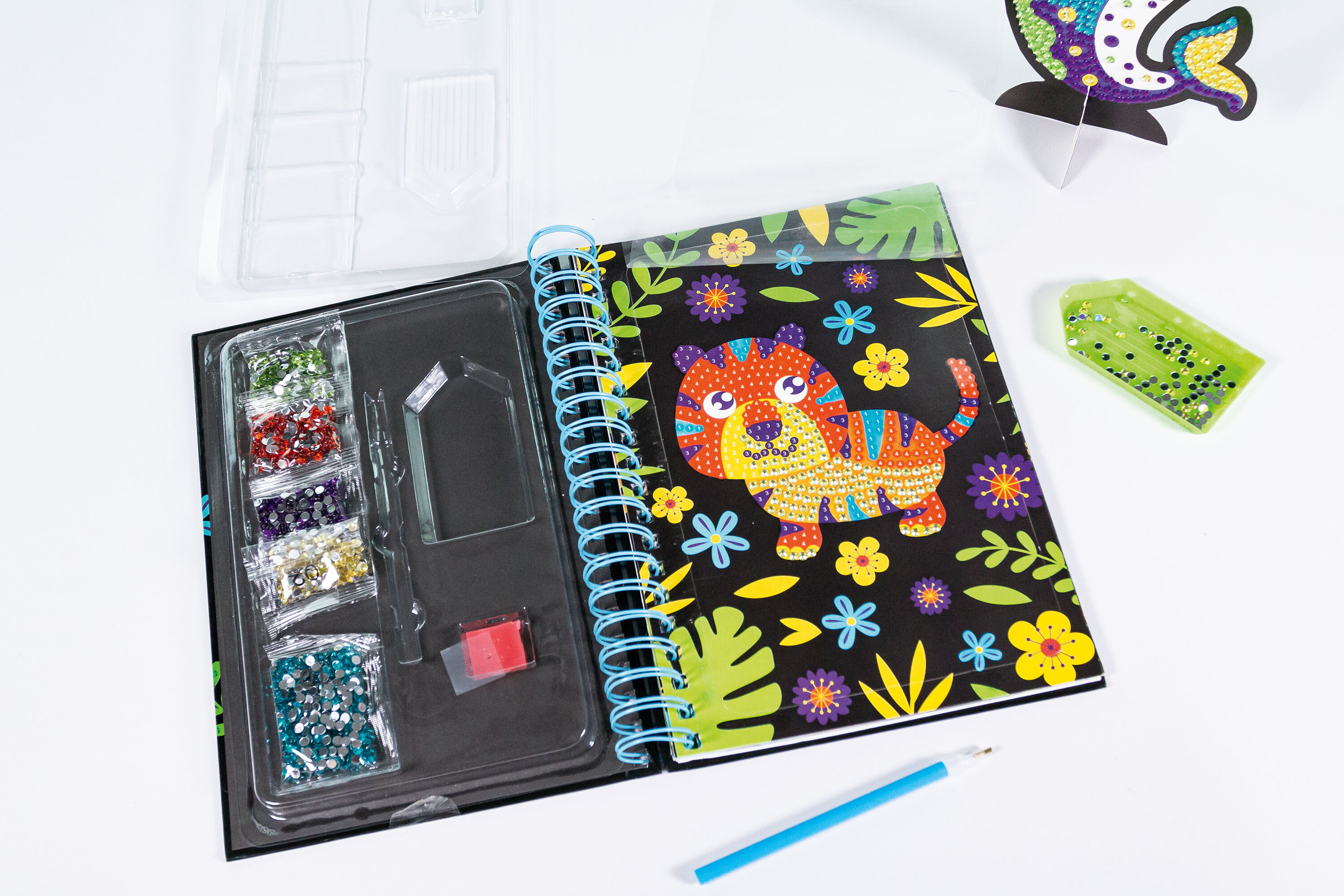 Glitzer, Funkel, Bastelspaß! Verziere einen starken Tiger, einen niedlichen Delfin oder eine neugierige Giraffe mit glitzernden Diamanten und lass dich überraschen, wie toll deine Kunstwerke funkeln! Enthalten sind 6 Motive, über 2.000 Diamanten und ein Applik...