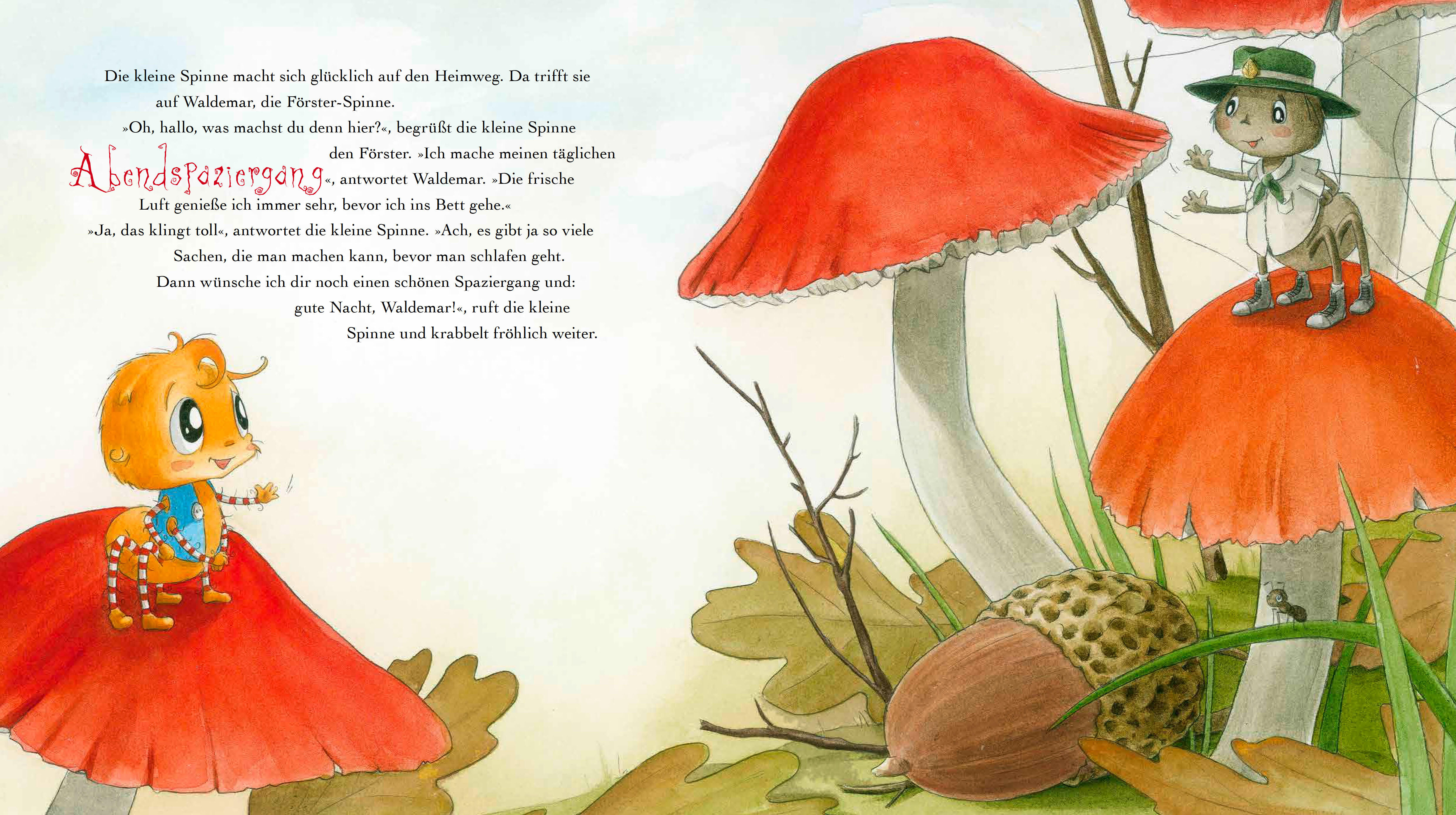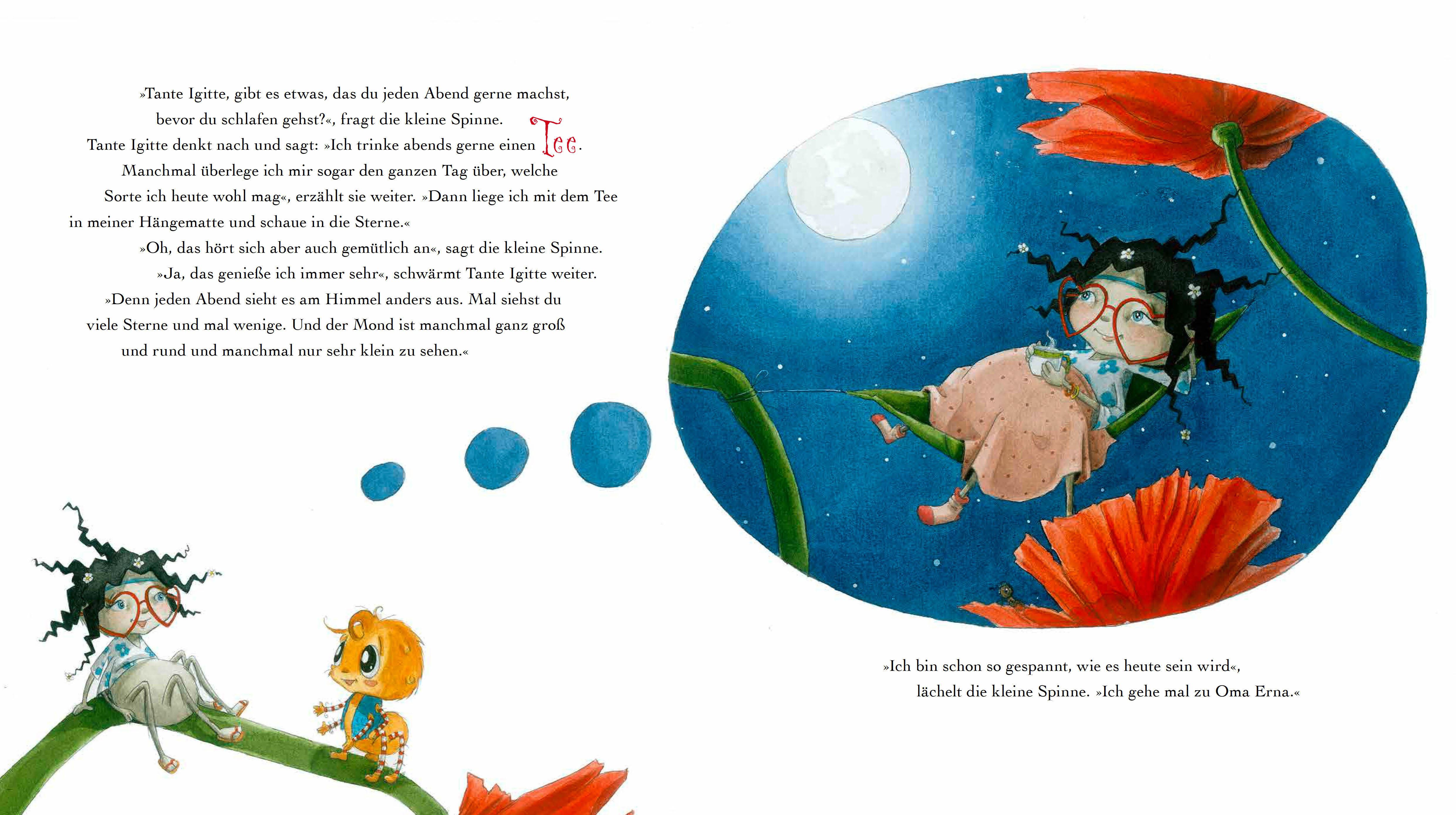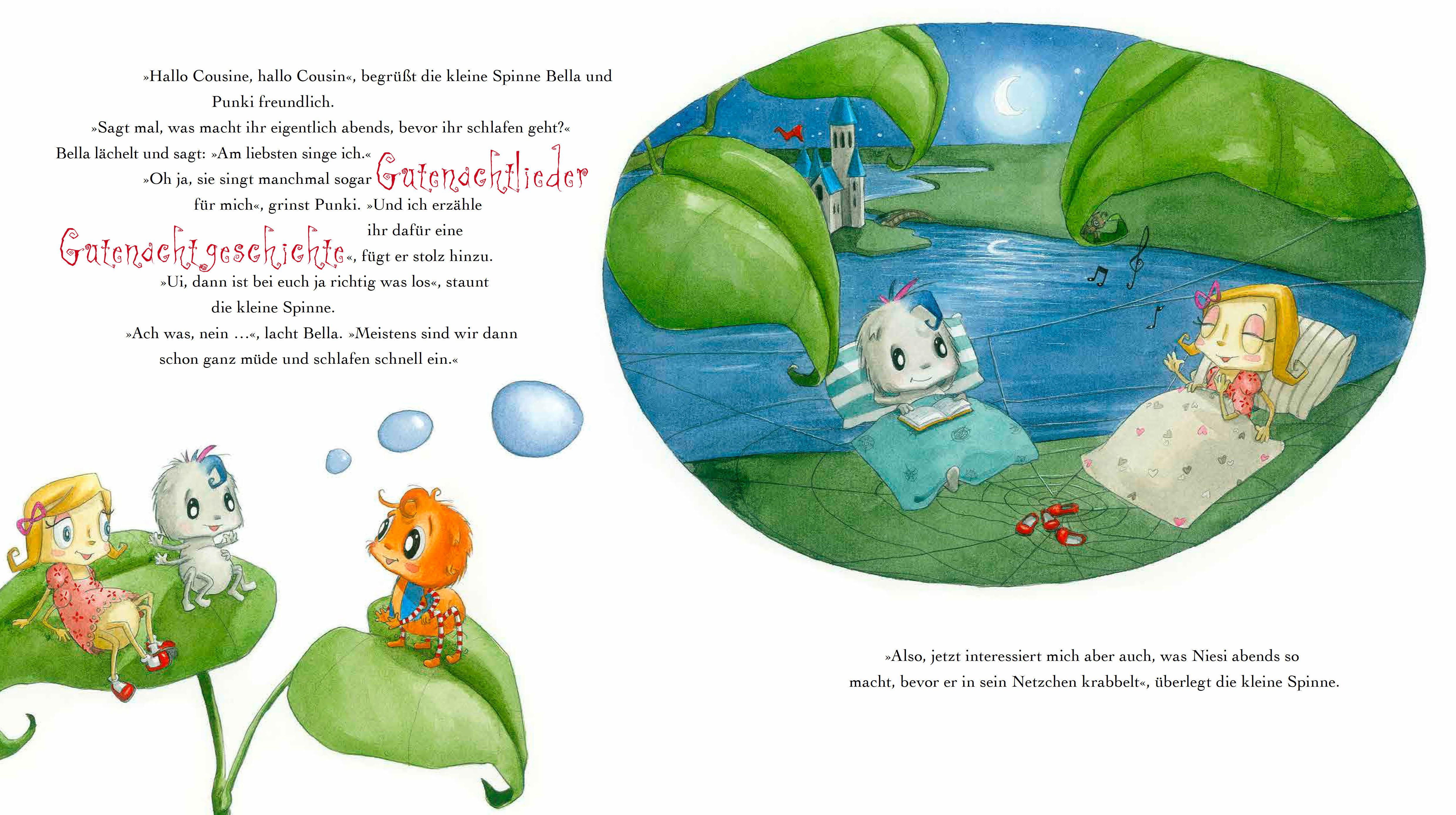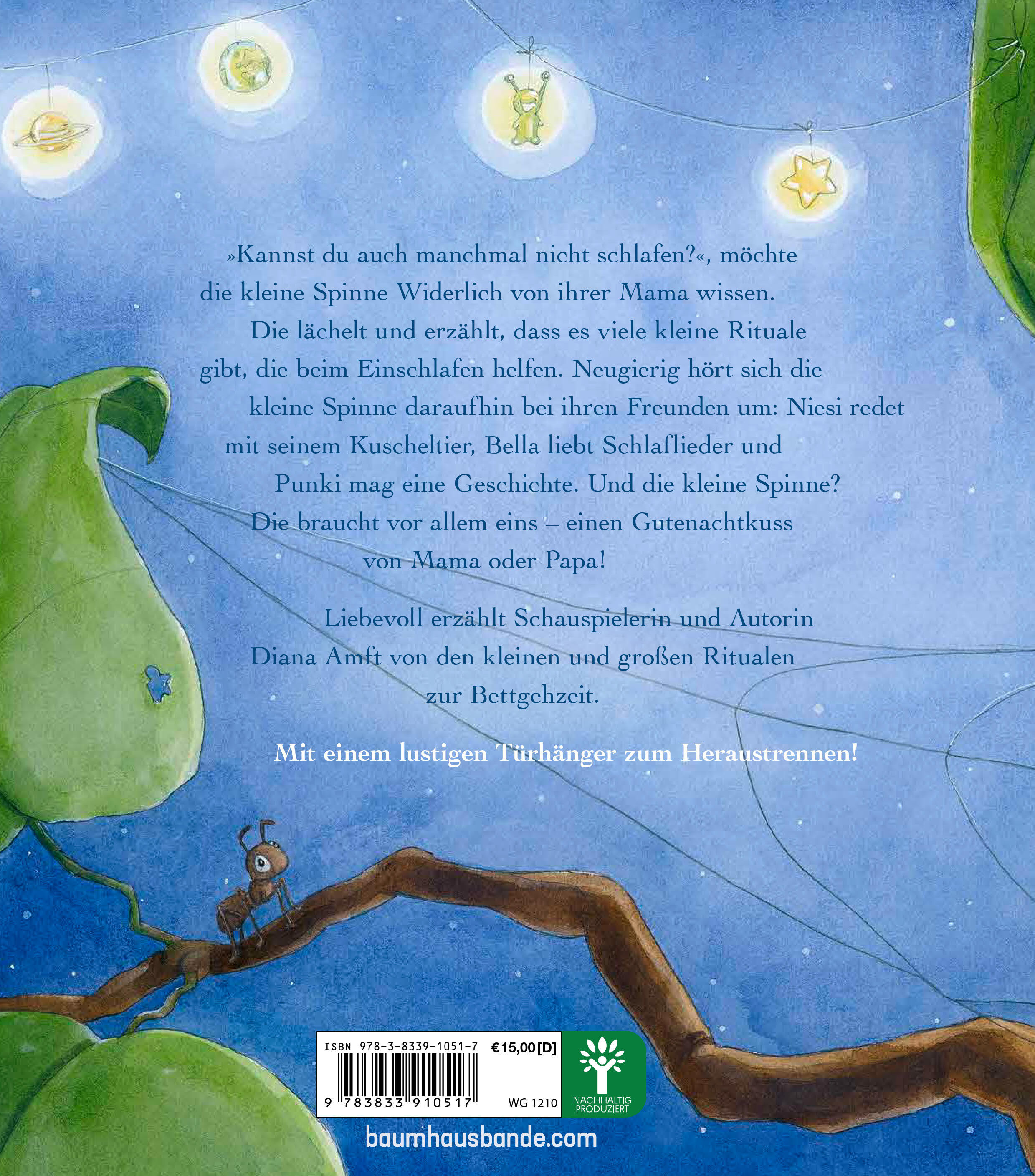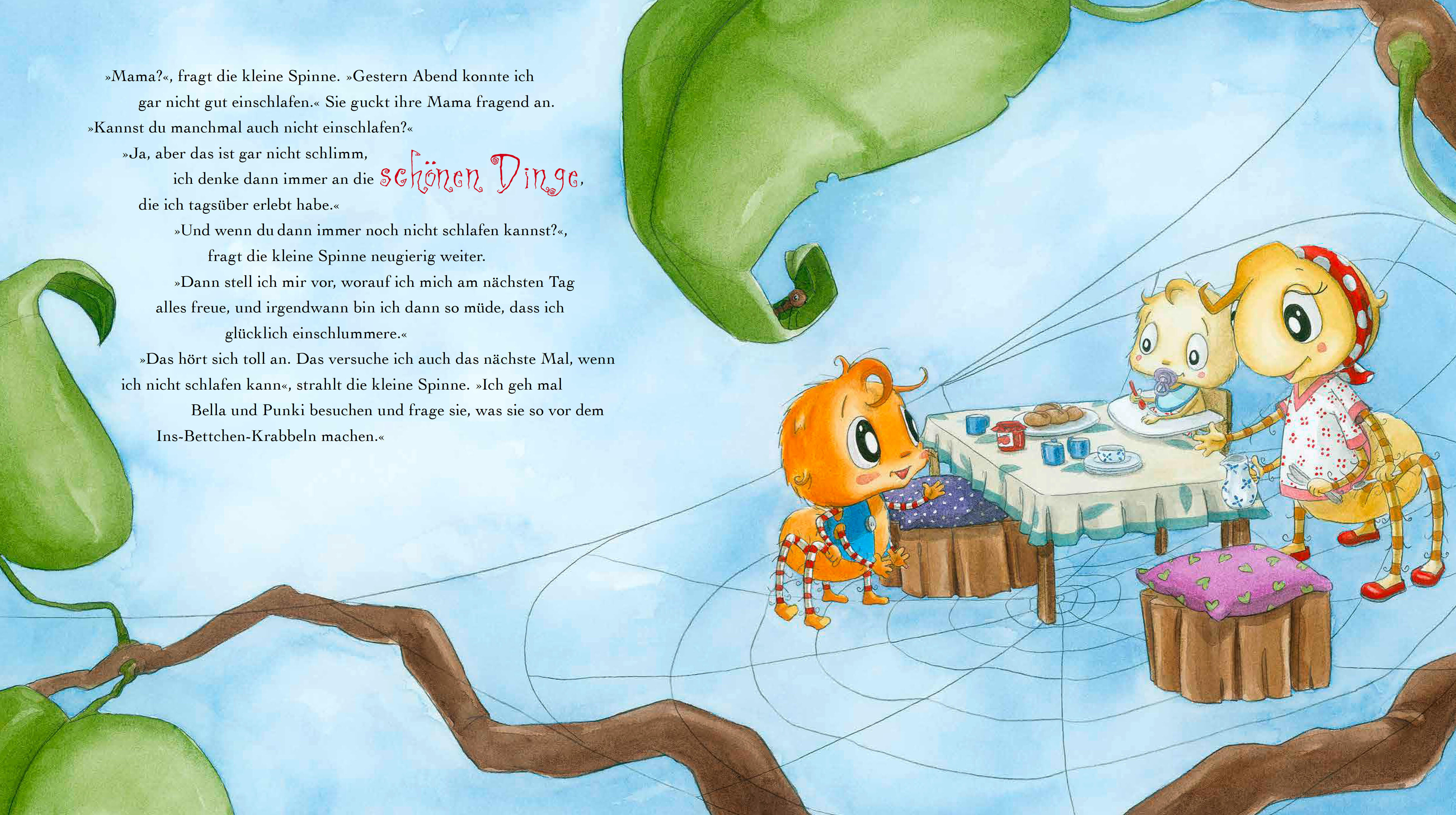 "Was machst du, wenn du nicht einschlafen kannst?", fragt die kleine Spinne ihre Mama. Und die Spinnenmama erzählt, dass es viele Gute-Nacht-Rituale gibt, die helfen können. Also macht sich die kleine Spinne auf den Weg, um ihre Freunde und Familie zu befragen...