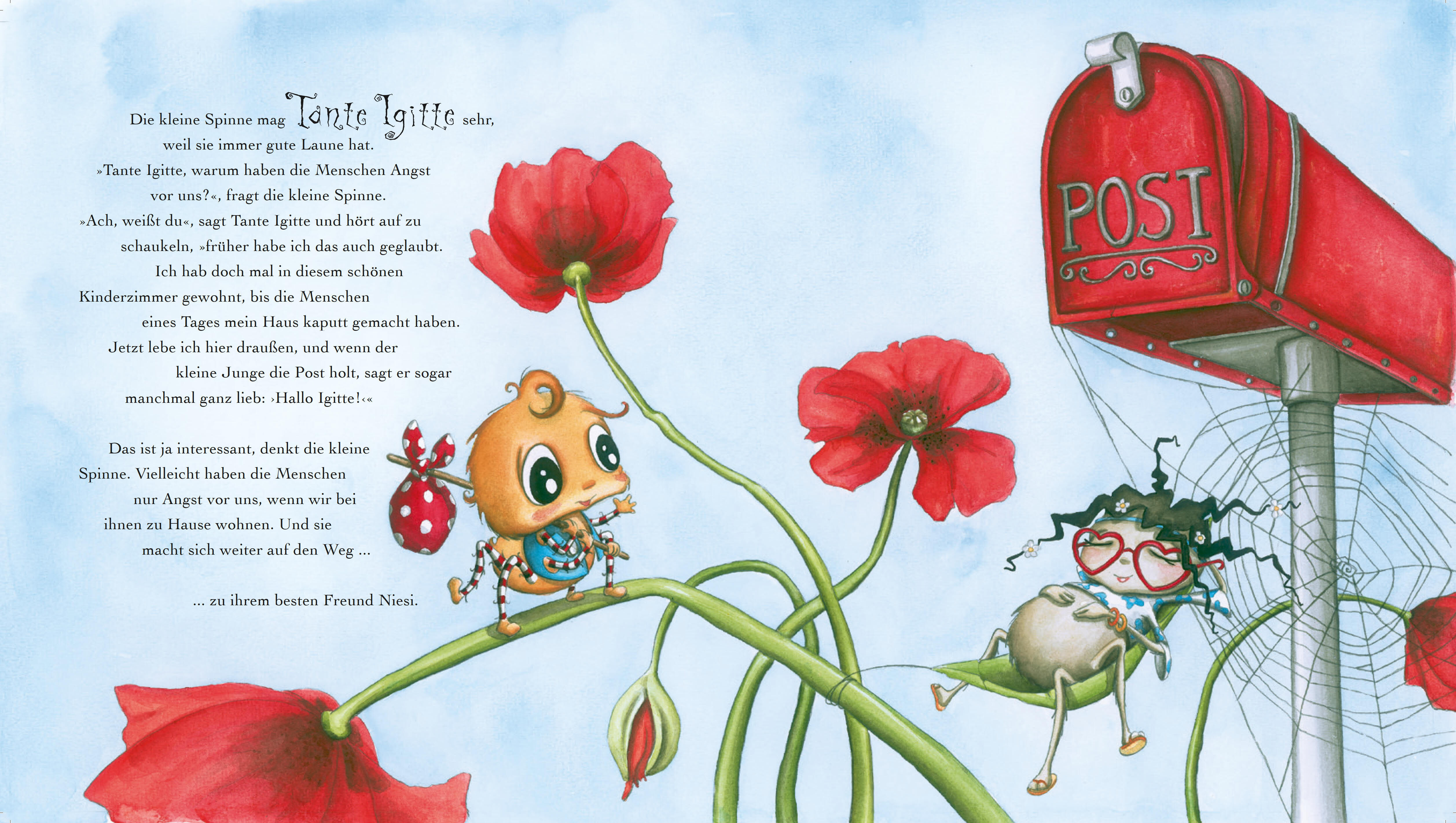 Die kleine Spinne Widerlich macht sich auf den Weg, um herauszufinden, warum die Menschen Angst vor ihr haben. Auf ihrer Reise begegnet sie vielen Freunden und Verwandten und fragt sie um Rat. Jeder hat eine andere Antwort auf ihre Frage. Und so nach und nach...
