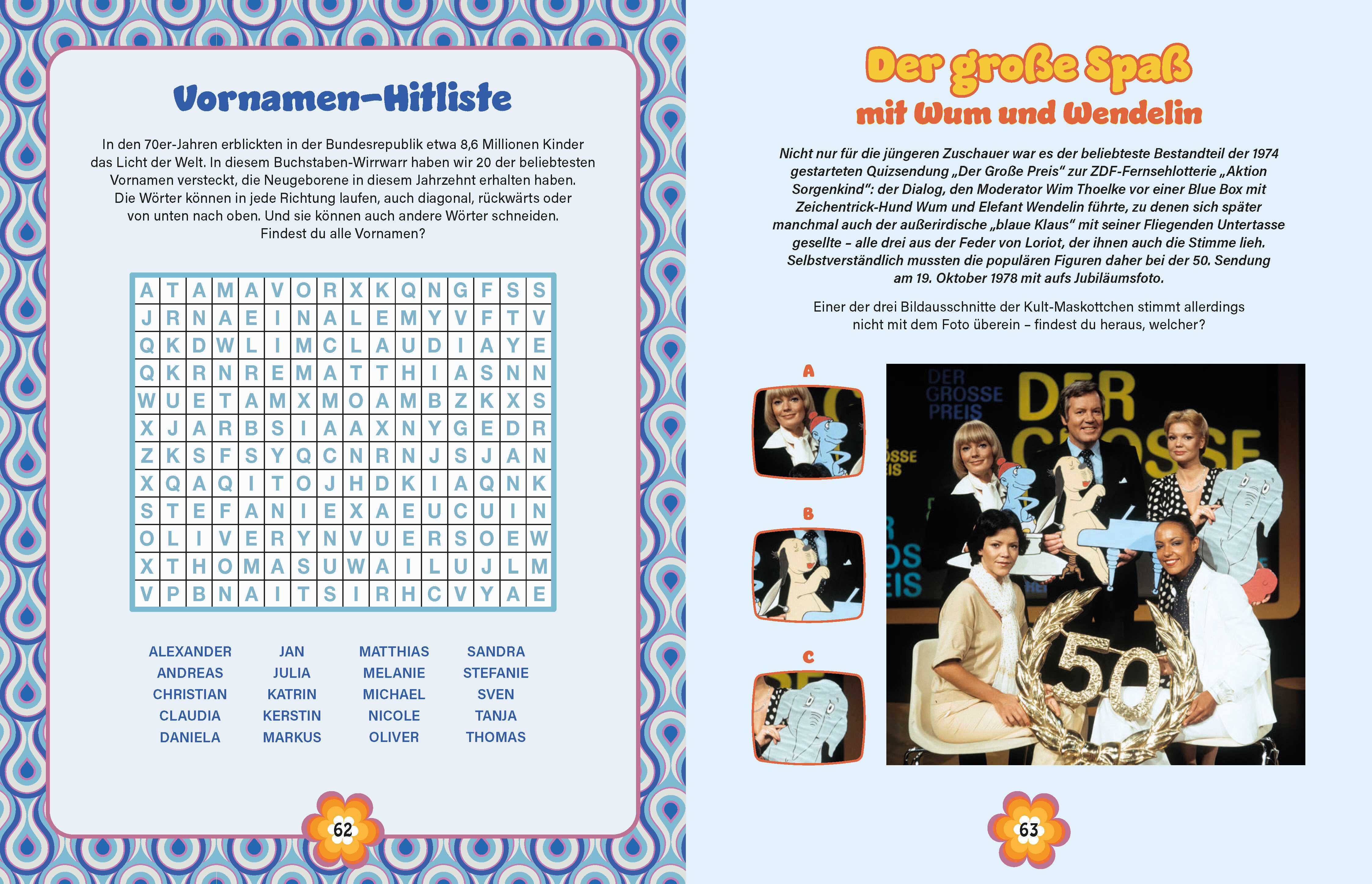 Rätselspaß am laufenden Band! • Rätseln, erinnern, Spaß haben: die bunten 70er in originellen Themenrätseln • Bunter Rätsel-Mix für jeden Geschmack: Kreuzworträtsel, Wortsuchrätsel, Logikrätsel, Bilderrätsel, Quizfragen und vieles mehr • Kultig...