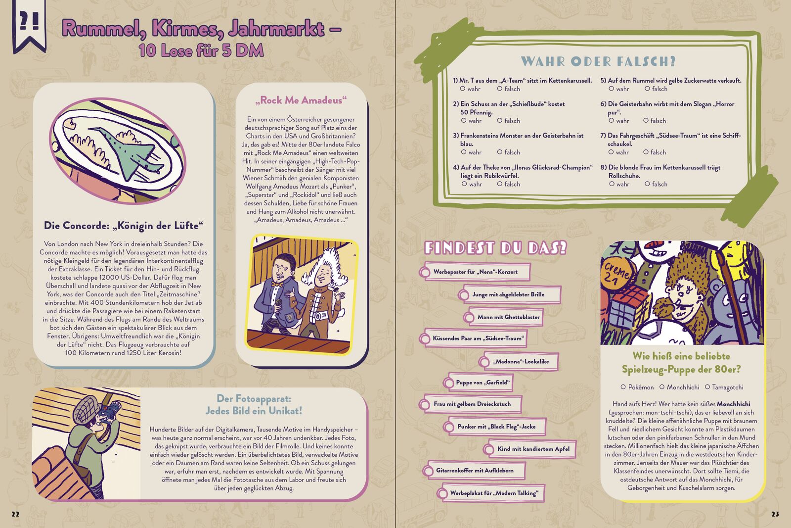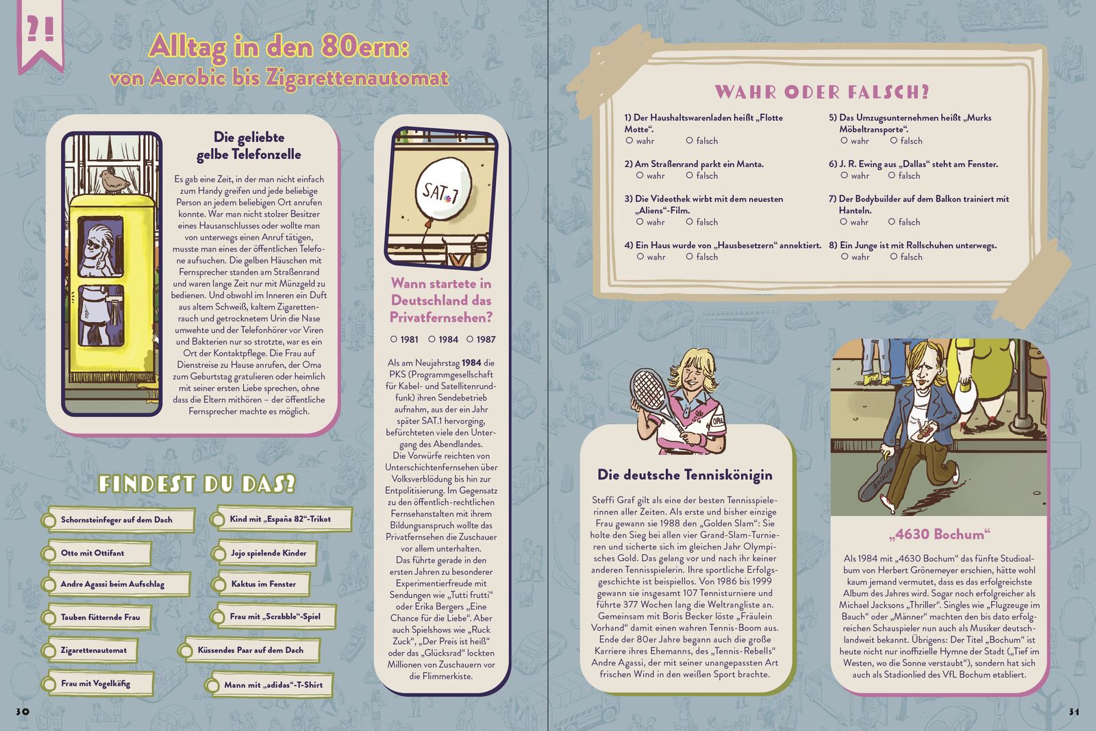 Hier werden die 80er wieder lebendig! Mit diesem originellen Wimmelbuch mit Nostalgiefaktor begibt man sich auf eine detailreiche Reise durch Gesellschaft, Geschichte und Popkultur der 1980er Jahre. Wieviel kostet ein Eis im Freibad? Welches Extra liegt dem Y...