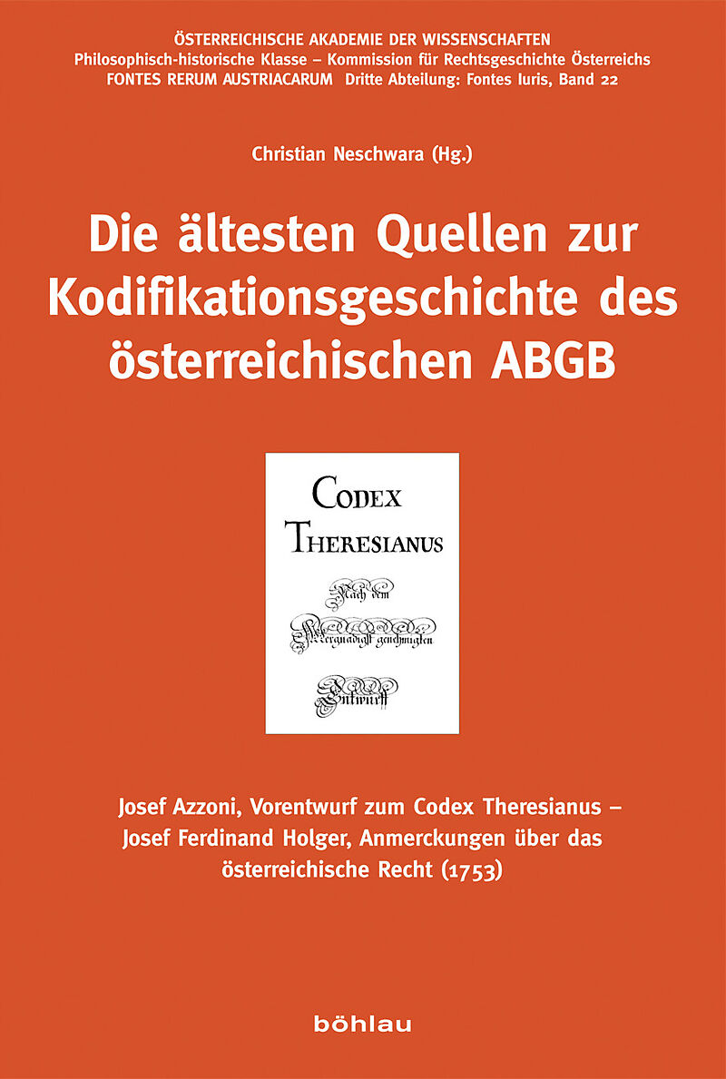 Die Publikation enthält die Edition der ältesten noch erhaltenen Materialien zum österreichischen Allgemeinen bürgerlichen Gesetzbuch (ABGB) von 1811. Wichtige Dokumente zur Entstehungsgeschichte der Kodifikation, wie der Codex Theresianus und seine Umarbeitun...