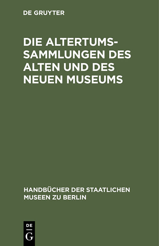 Keine ausführliche Beschreibung für "Die Altertums-Sammlungen des Alten und des Neuen Museums" verfügbar. Inhalt Frontmatter -- Einleitung -- INHALT -- Vorbemerkung -- I. Antike Bildwerke -- II. Antiquarium -- III. Olympia-Sammlung -- IV. Pergamenisc...