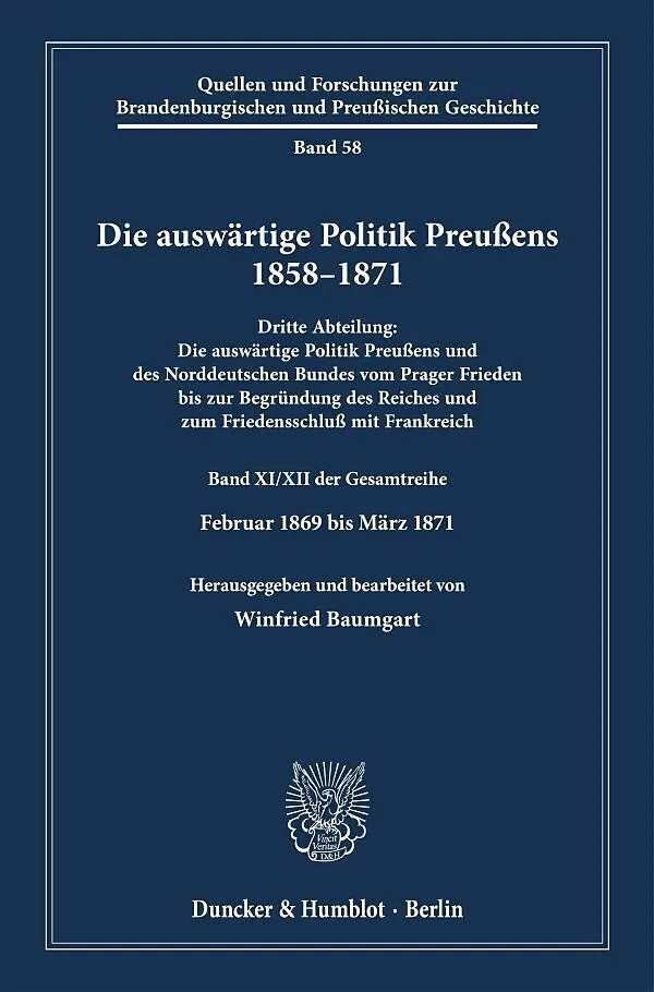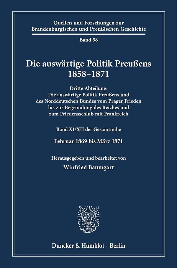 Der Doppelband 11/12 der »Auswärtigen Politik Preußens 1858-1871« schließt die Lücke, die seit 1945 für den Abschluss der Quellenedition bestanden hat. Er belegt, dass der Krieg zwischen Preußen und Frankreich schon 1869 in der Luft lag. Er entzündete sich sch...