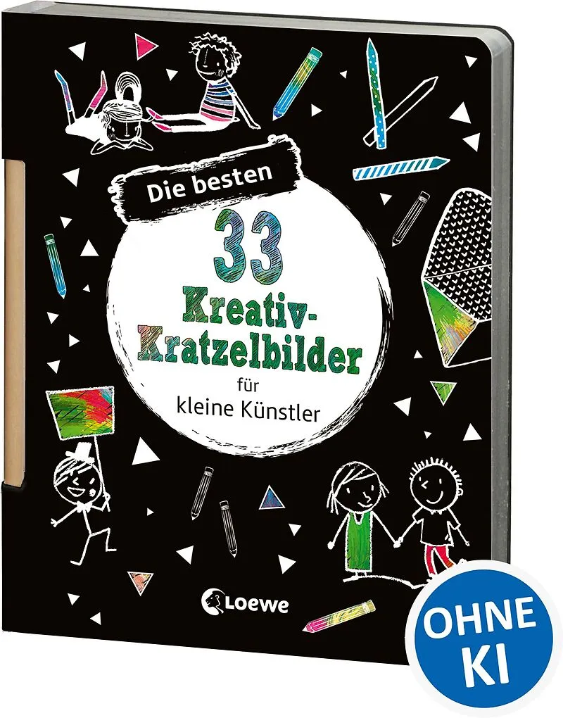 Loewe-Bücher: garantiert ohne KI + 33 Zauberseiten mit bunten Mustern + Mit Holzstift + In kleinem Format perfekt für unterwegs + Lustige Strichmännchen, sockenfressende Waschmaschinen & bunte Maskottchen in diesem Kratzelbuch findest du 33 witzige Bilder ...