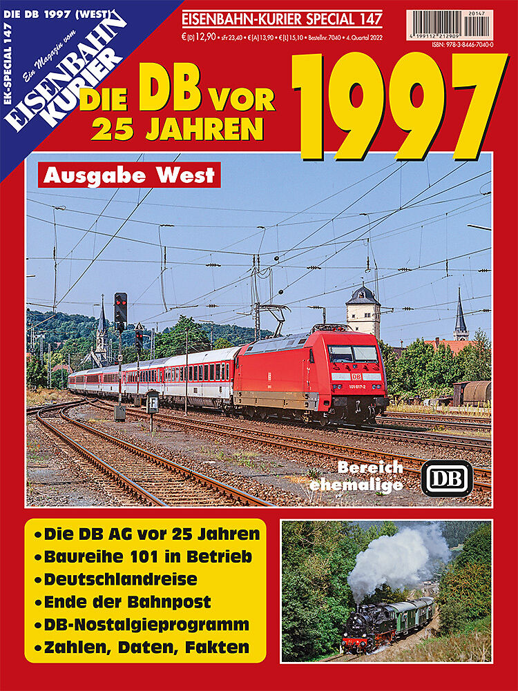 Auch 1997 setzte die DB AG ihren Weg zur "neuen Bahn" weiter fort, wo mit den vervollständigten ICE-2-Zügen und der Baureihe 101 nun noch mehr moderne Fahrzeugkonstruktionen in den Plandienst gingen. Das neue Special erinnert an viele damalige Ereignisse, zu d...