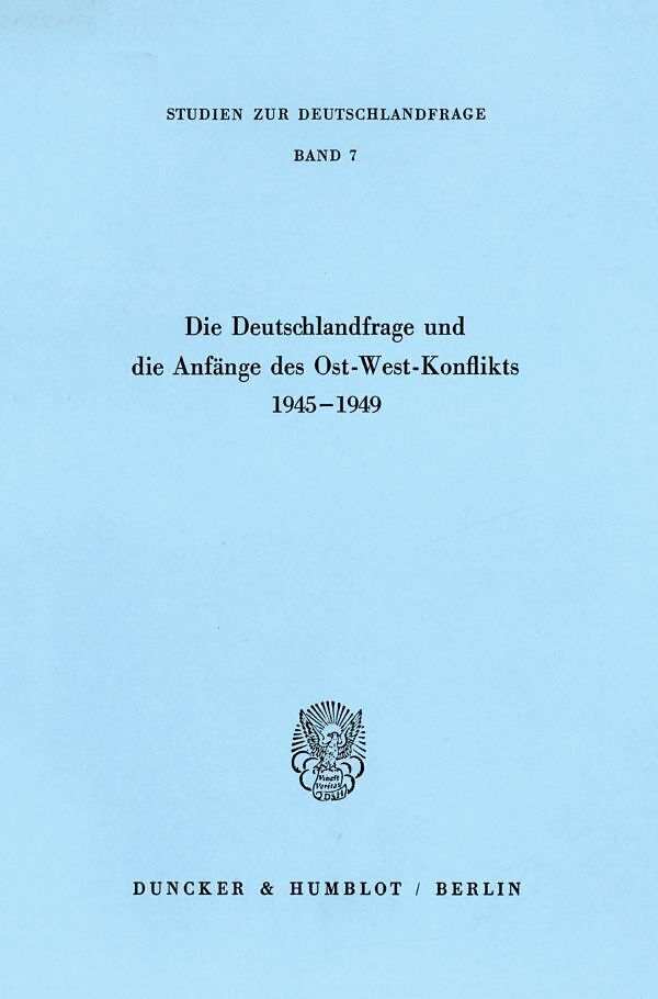 Inhalt Inhalt: W. Link, Die amerikanische Deutschlandpolitik 1945-1949 - D. Junker, Die »revisionistische« Schule in der amerikanischen Historiographie und die Anfänge des Ost-West-Konflikts - A. Fischer, Die Sowjetunion und die »deutsche Frage« 1945-1949 - J....
