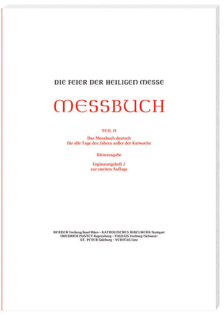 Messbuch - Ergänzungsheft zur 2. Auflage mit überarbeitetem Regionalkalender und 23 neuen Messformularen für Herren- und Heiligenfeste, die das Missale Romanum (2002) enthält. Teil II: Das Messbuch deutsch. Für alle Tage des Jahres außer der Karwoche. Die Klei...