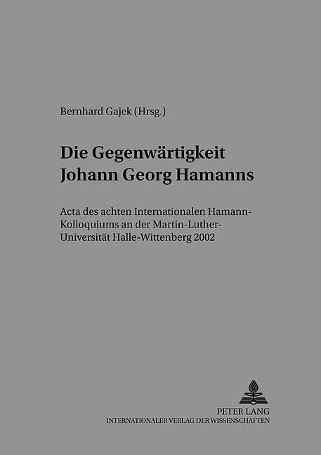 Unter dem Tagungsthema Die Gegenwärtigkeit Johann Georg Hamanns wird Hamanns Bedeutung für wichtige Fragen, Probleme und Diskurse unserer Zeit überprüft. In philosophischer Hinsicht geht es um Sprach-, Geschichts- und Zeichentheorie. Innerhalb der Theologie we...