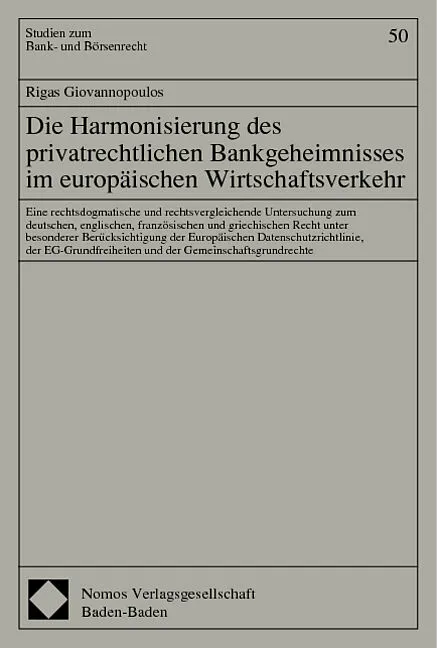 Das Ziel der Arbeit, die mit dem »Baker & Mc Kenzie-Preis 2000« ausgezeichnet wurde, besteht in der Untersuchung der Harmonisierungsmöglichkeiten des Bankgeheimnisses auf europäischer Ebene. Die Harmonisierung sollte durch die Beseitigung von Rechtsuntersc...