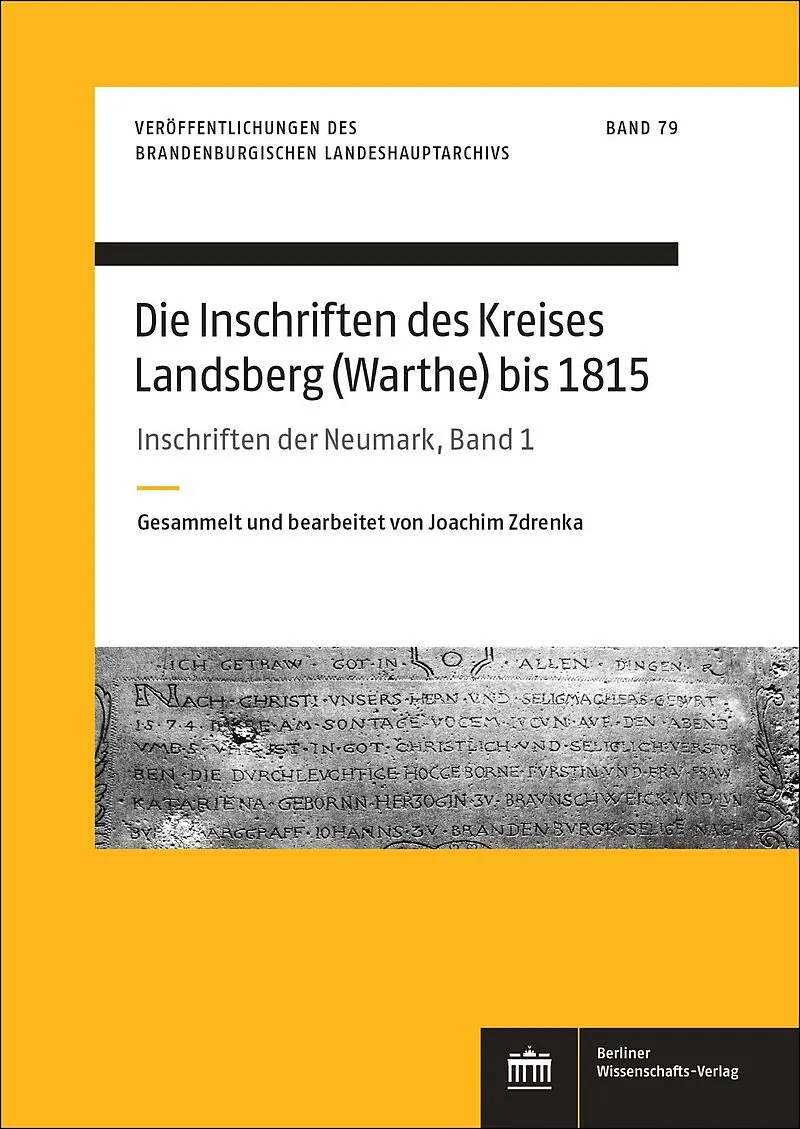 Der vorliegende Band eröffnet eine mehrbändige Reihe über "Die Inschriften der Neumark", der einstigen brandenburgischen Landschaft östlich der mittleren Oder, und beschreibt die aus dem ehemaligen Landkreis Landsberg an der Warthe stammenden, vom 15. Jahrhun...