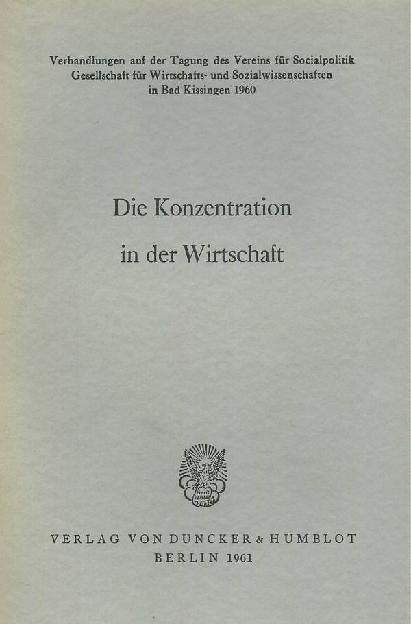 Inhalt Inhalt: E. Salin, Soziologische Aspekte der Konzentration - K. Hax, Betriebswirtschaftliche Aspekte der Konzentration - J. H. Müller, Konzentration und Wettbewerb - C. Föhl, Ursachen und Beeinflußbarkeit der Vermögenskonzentration - H. Achinger, Sozialp...
