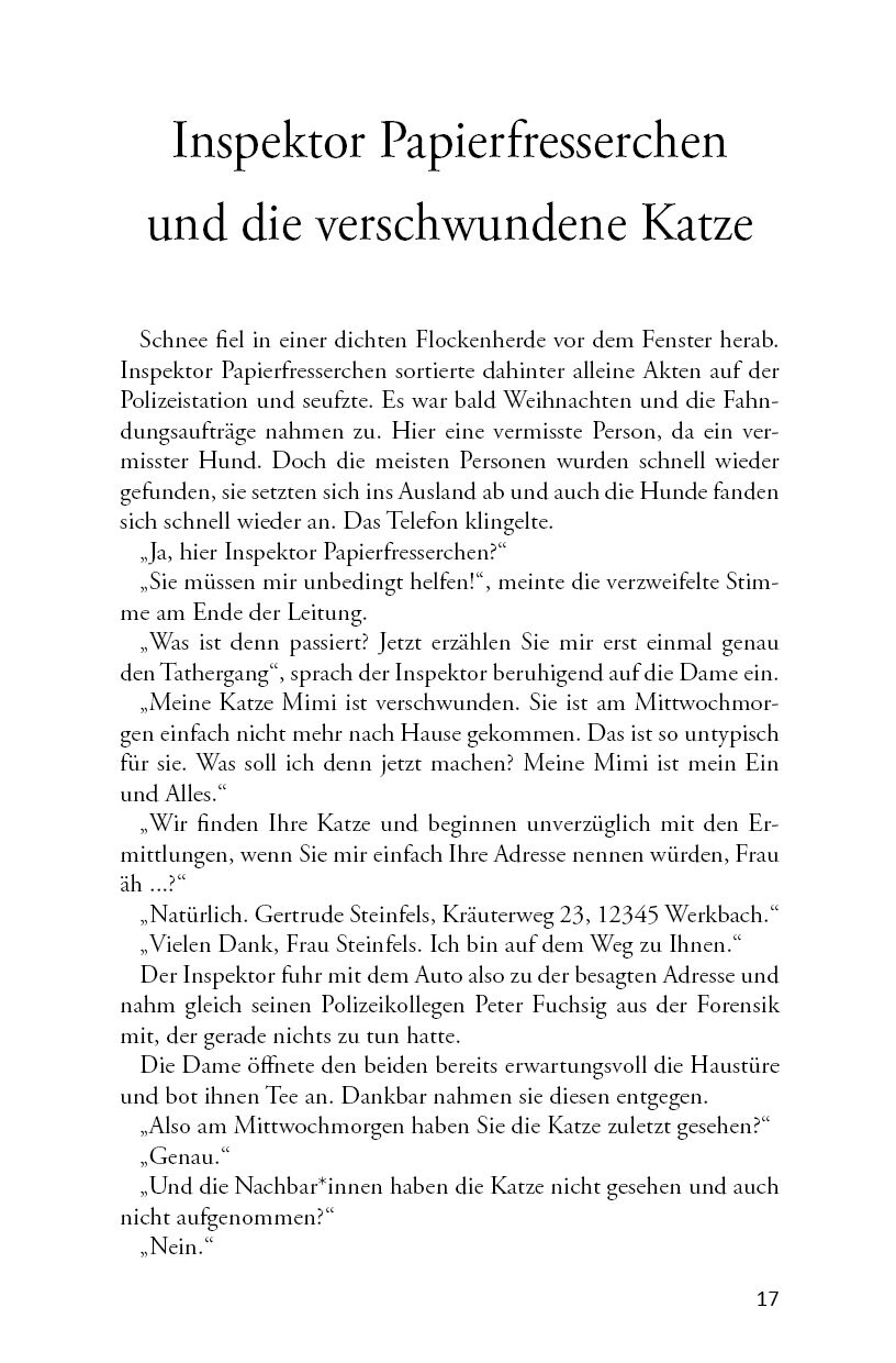 Hier kommt Inspektor Papierfresserchen, ein gewiefter Ermittler, der in den zurückliegenden Jahren schon so machen kniffeligen Kriminalfall gelöst hat. Dabei ist es ihm ganz egal, ob eine Torte verschwunden, ein Junge entführt oder die Pflaumen auf mysteriöse ...