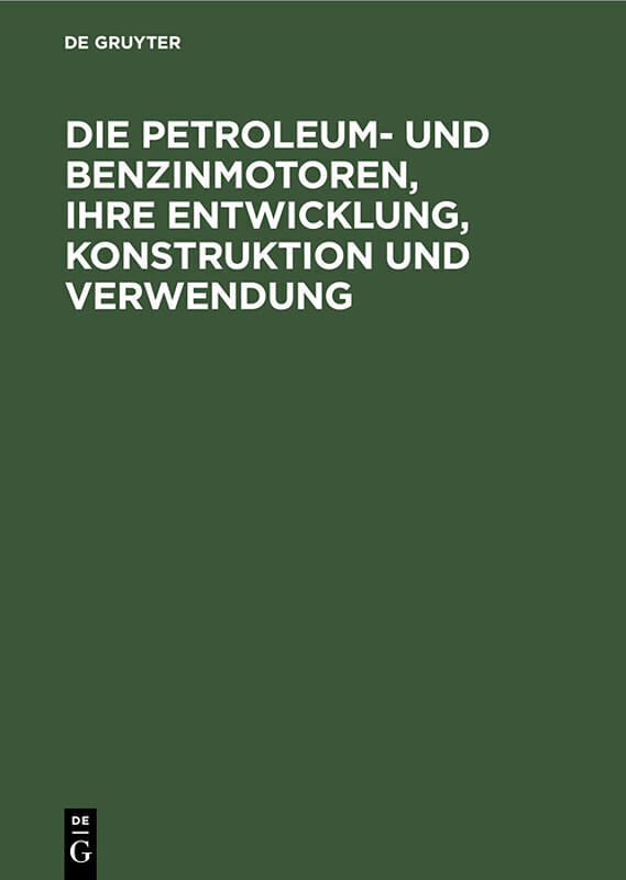 Frontmatter -- Vorwort -- Inhaltsverzeichnis -- Erstes Kapitel. Das Rohpetroleum und seine Destillate -- Zweites Kapitel. Die Petroleumdestillate in ihrer Eigenschaft als Krafterzeugungsmittel -- Drittes Kapitel. Die Entwickelung der Benzin- und Petroleummotor...