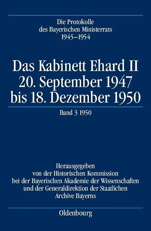 Mit dem dritten Teilband der Ministerratsprotokolle des Kabinetts Ehard II, in dem die CSU erstmalig allein die Regierungsverantwortung trug, wird für das Regierungsjahr 1950 nunmehr der insgesamt sechste Band der Edition der Ministerratsprotokolle 1945-1954 v...