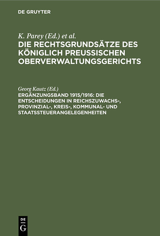Die Rechtsgrundsätze des Königlich Preussischen Oberverwaltungsgerichts / Die Entscheidungen in Reichszuwachs-, Provinzial-, Kreis-, Kommunal- und Staatssteuerangelegenheiten