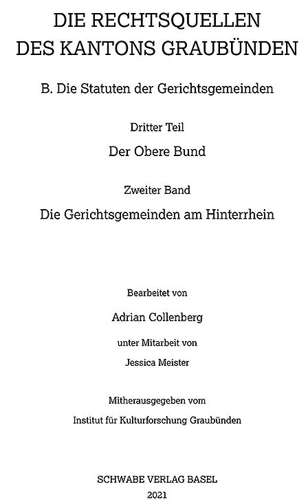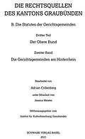 Ergänzend zum Rechtsquellenband zu den Gerichtsgemeinden am Vorderrhein (SSRQ GR B III/1: Surselva) folgt nun die Edition zu den ehemaligen Gerichtsgemeinden am Hinterrhein: Rhäzüns, Obersaxen, Tenna, Safien, Trin/Tamins, Heinzenberg, Thusis, Tschappina, Scham...