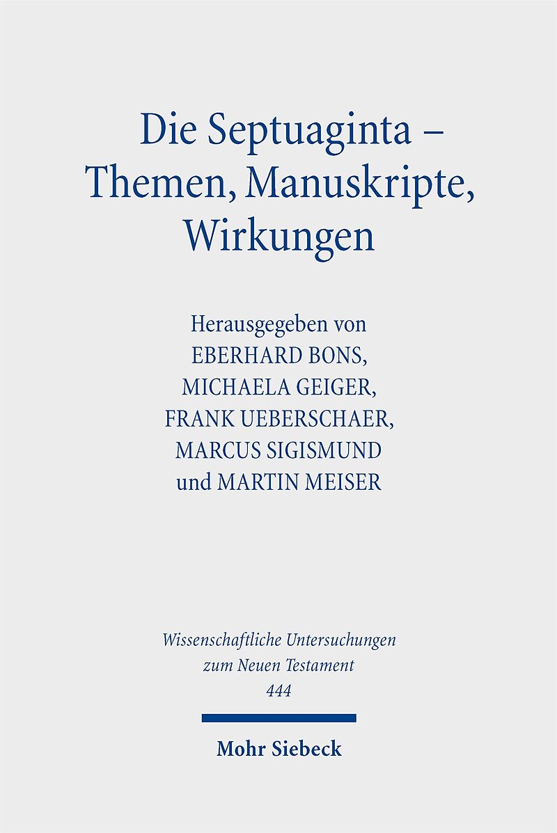 Themen Eberhard Bons: Septuagint Studies between Past and Future. State of the Art and New Perspectives - Emanuel Tov: The Palestinian Source of the Greek Translation of the Torah - Christian Eberhart: Leontopolis, Onias und die Septuaginta - Einflüsse und Auswirkungen - Robert J.V. Hiebert: Hermeneutical Observations Regarding the Work of the Translator of Septuagint Genesis - Dionisio Candido: Manipulating God? On the Theology of the Book of Judith - Knut Usener: Die LXX und ihre Vernetzung mit der hellenistisch-griechischen Literatur. Das Beispiel Tobit - Innocent Himbaza: The Figure of Moses as the Legislator in the Book of Leviticus. Septuagint, Masoretic Text and Samaritan Pentateuch Compared - Antonella Bellantuono: Observations on the Greek Style of the Book of Daniel (OG-Dan and Th-Dan) - Marco Settembrini: Seleucid Translations within OG Daniel? A New Look on Dan 4 - Dirk Büchner: Greek Words in the Domain of Social Relations. Septuagint Leviticus - Jean Maurais: The Quest for LXX Deuteronomy's Translator. On the Use of Translation Technique in Ascertaining the Translator's Vorlage - Frank Ueberschaer: Beobachtungen zum Lob der Väter - Burkard M. Zapff: Einige Beobachtungen zur Hermeneutik der LXX-Fassung der Michaschrift - Cristina Buffa: The Adjective in the Light of Greek Literature, in the LXX and in Jewish Literature in Greek - Giulia Leonardi: Why is the Word so Rare in the Septuagint? - Arie van der Kooij: Servant or Slave: The Various Equivalents of Hebrew ' Ebed in the Old Greek of Isaiah - Christoph Kugelmeier: Zum Gebrauch der Verbaspekte im Buch Sirach - Hans Ausloos: Recovering Cain's Words... The Septuagint and Textual Criticism of Gen 4,8 - Mikhail G. Seleznev: Replacing with in the LXX: Self-Censorship or Inner Development of the Jewish Tradition? - Larry Perkins: Yahweh's (Exod 15:13, 16-18). The Nature of Yahweh's Relationship to the Land of Canaan in Greek Exodus - Michaela Geiger: Der Bote des Exodus in der Septuaginta. Ex 23,20-23MT+LXX als zweifacher Schlüsseltext der Angelologie - Rodrigo Franklin de Sousa: LXX Isaiah among the Other LXX Books. Trajectories and Convergences - Zoltan Oláh: Bote des großen Ratschlusses (Jes 9,6LXX). Geistesgeschichtlicher Hintergrund der Septuaginta - Laura Bigoni: Literary and Dramatic Aspects of LXX Esther - Ann-Christin Grüninger: Die himmlischen Reiter in 2Makk 10 - Martin Rösel: Die Existenz des Beters vor Gott (Ps 39[38]). Anthropologische Akzentsetzungen im LXX-Psalter - W. Edward Glenny: Translation Technique and Textual Variants in LXX Micah 1:10-16 - Anna Passoni Dell'Acqua: Fleurs, boutons et leurs parfums dans la LXX - Marcus Sigismund: Taubheit in der LXX und der jüdischen Historiographie: Terminologie, Konzept und soziale Realität