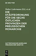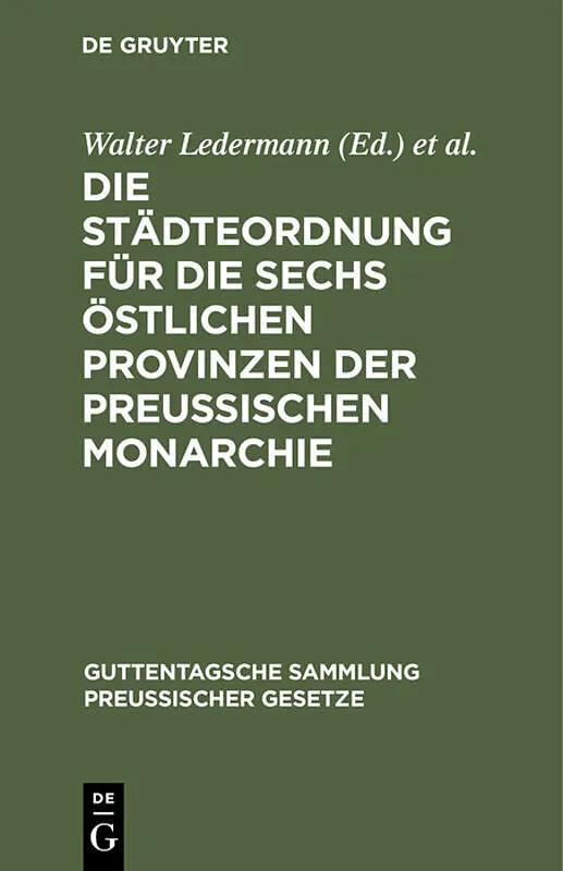 Keine ausführliche Beschreibung für "Die Städteordnung für die sechs östlichen Provinzen der Preussischen Monarchie" verfügbar. Frontmatter -- Vorrede zur ersten Auflage -- Vorrede zur zweiten Auflage -- Abkürzungen -- Inhalt -- 1. Historische Einlei...