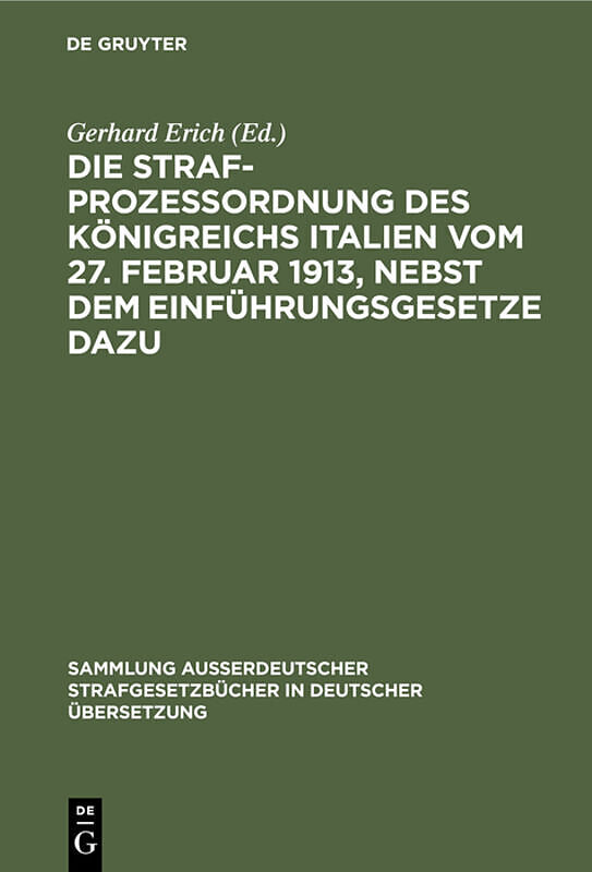 Keine ausführliche Beschreibung für "Die Strafprozeßordnung des Königreichs Italien vom 27. Februar 1913, nebst dem Einführungsgesetze dazu" verfügbar. Frontmatter -- Inhaltsverzeichnis -- Erstes Buch. Allgemeine Bestimmungen -- Zweites Buch. Von der...