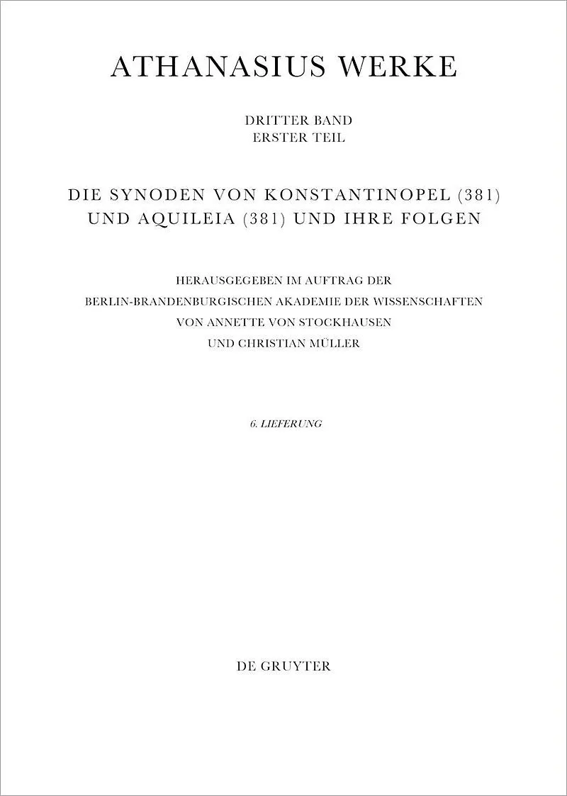Part 6 of the documents on the Arian controversy includes documents on the councils of Konstantinopel (381) and Aquileia (381) as well as the basilica conflict in Mailand und Augustine's conflict with the Homoeans, together with a German translation. The fasc...