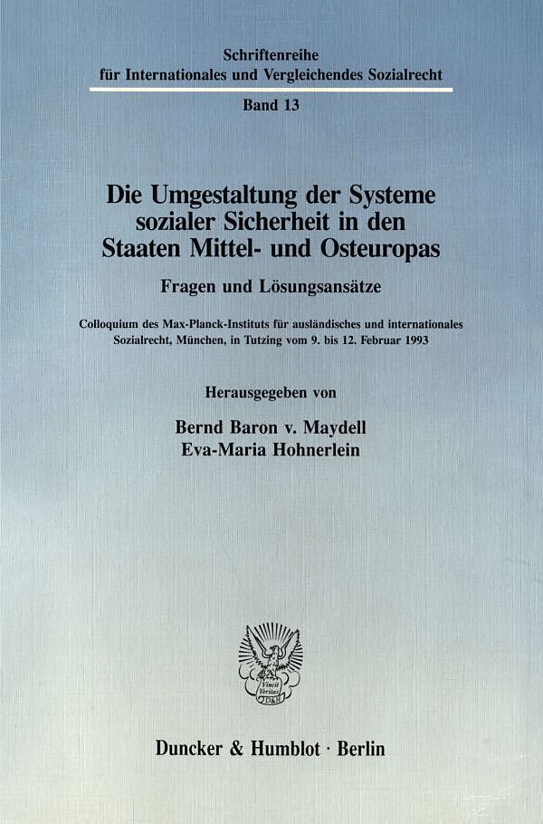 Inhalt Inhalt: P. A. Köhler, Historischer Kontext und Entwicklungsgeschichte von Systemen sozialer Sicherheit - L. Florek, Entwicklungsgeschichte sozialer Sicherheit aus östlicher Sicht: das Beispiel Polen - F. Haffner, Ökonomische Rahmenbedingungen der System...