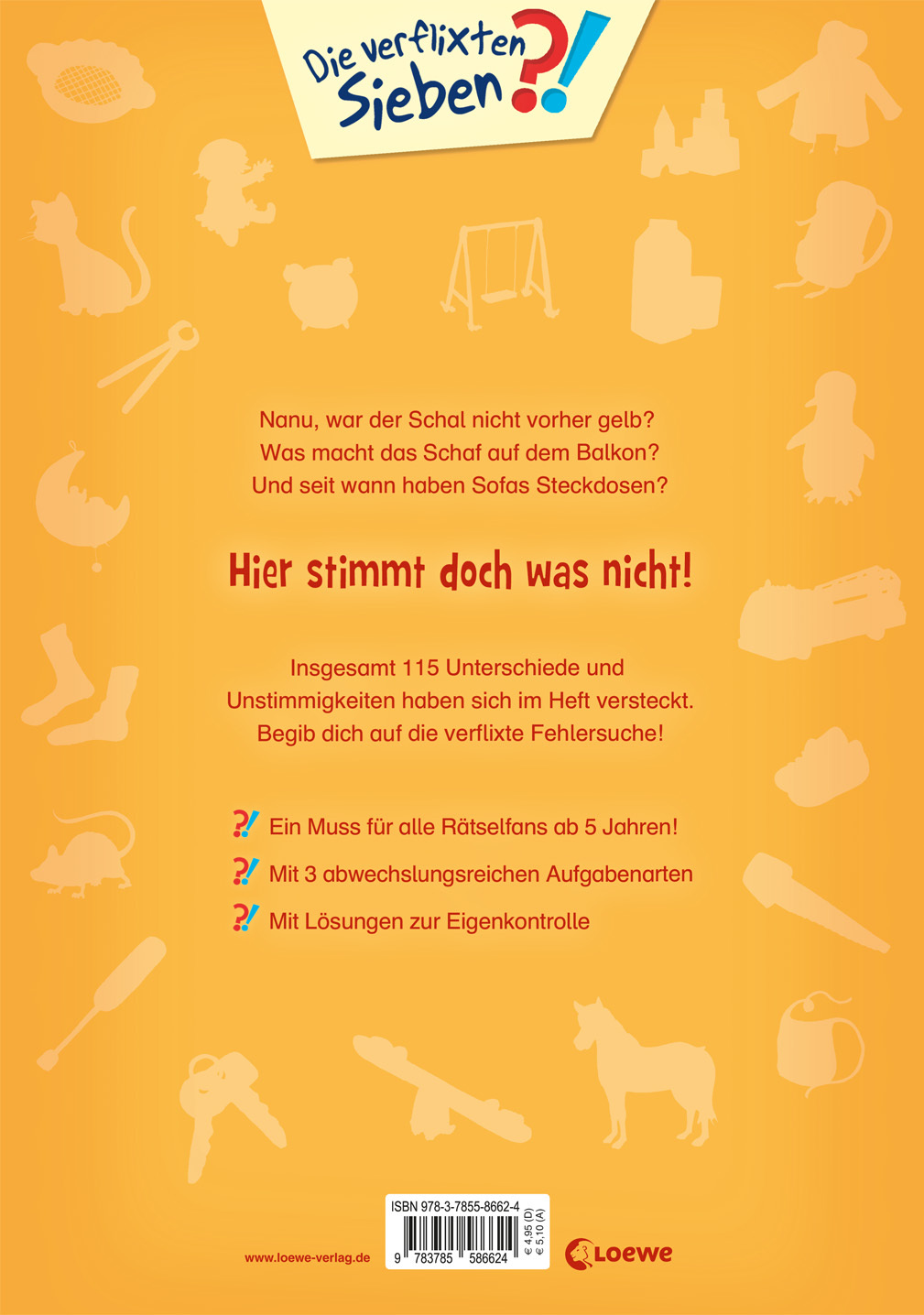 Loewe Verflixten Sieben - Mein buntes Fehler (Orange) + Fördert die Kreativität und die Logik + Motiviert zum Mitmachen, Beschäftigen und Entspannen + Knifflige Rätsel + Nanu, war der Schal nicht vorher gelb? Was macht das Schaf auf dem Balkon? Und seit wann h...