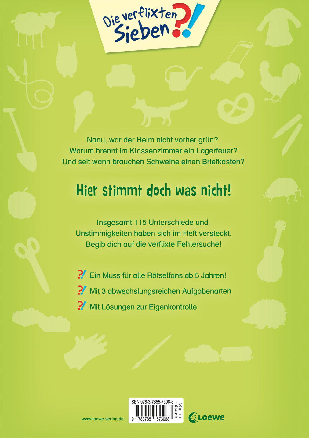 Nanu, war der Helm nicht vorher grün? Warum brennt im Klassenzimmer ein Lagerfeuer? Und seit wann brauchen Schweine eigentlich einen Briefkasten? Hier stimmt doch was nicht! Insgesamt 115 Unterschiede und Unstimmigkeiten haben sich im Heft versteckt. Begib di...