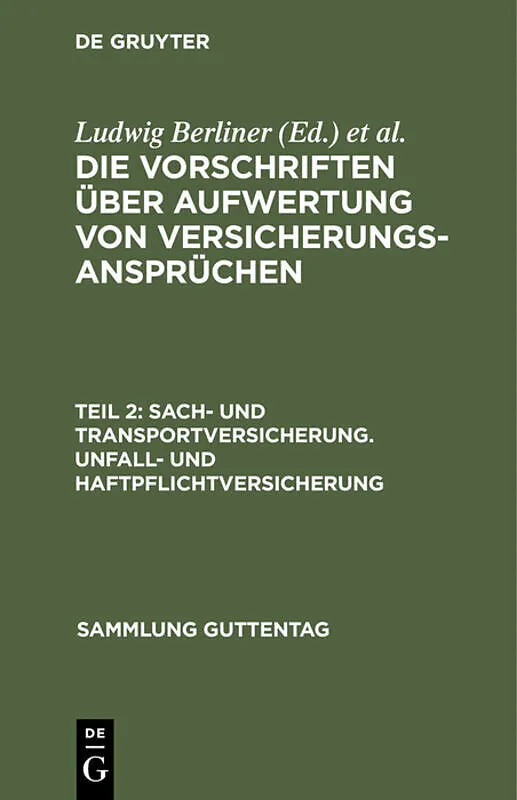Keine ausführliche Beschreibung für "Sach- und Transportversicherung. Unfall- und Haftpflichtversicherung" verfügbar. Frontmatter -- Inhaltsverzeichnis -- Abkürzungen -- Einleitung -- Verordnung über die Aufwertung von Versicherungsansprüchen (Text) ...
