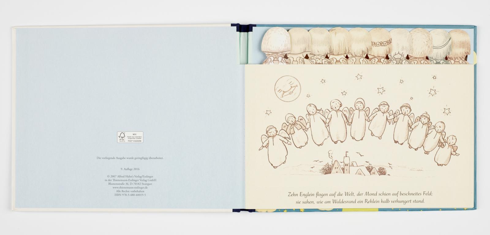Ein Bilderbuchklassiker zur Weihnachtszeit! Zehn Englein flogen auf die Welt..." Heilig Abend steht vor der Tür und die zehn Weihnachtsengel haben alle Hände voll zu tun. Still und heimlich helfen sie den Menschen auf der Erde: Ein Engelchen füttert die Tiere...