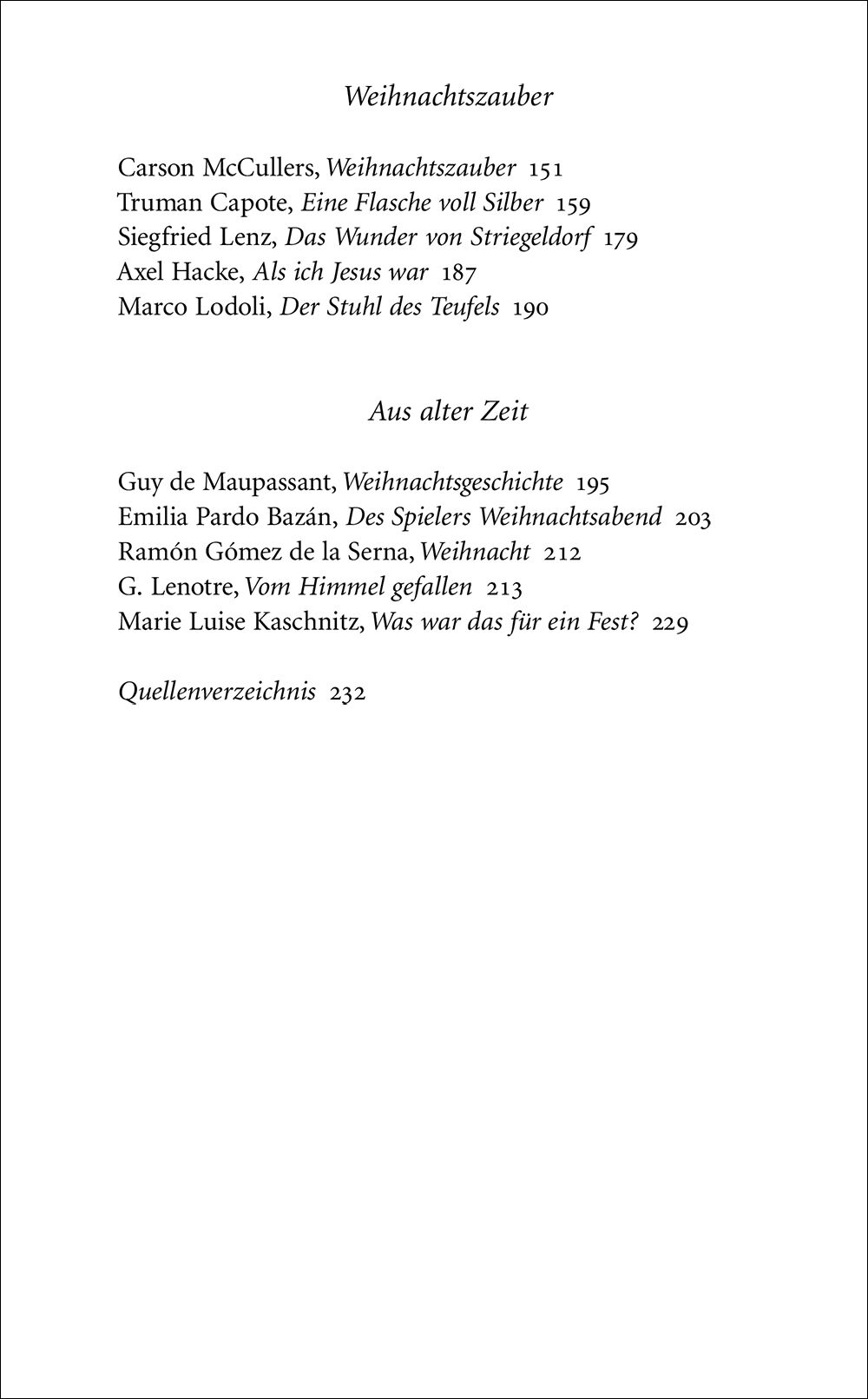 Weihnachten ist die Zeit der Wunder. Das größte aller Wunder feiern wir Jahr für Jahr. In der Weihnachtszeit geschehen aber auch andere Wunder, kleine und nicht ganz so kleine: Wunder der Freundschaft und Freundlichkeit, Wunder der Liebe, Wunder, die man nicht...Weihnachten ist die Zeit der Wunder. Das größte aller Wunder feiern wir Jahr für Jahr. In der Weihnachtszeit geschehen aber auch andere Wunder, kleine und nicht ganz so kleine: Wunder der Freundschaft und Freundlichkeit, Wunder der Liebe, Wunder, die man nicht erklären kann, und Wunder, die keiner Erklärung bedürfen. Die schönsten dieser Wunder sind hier versammelt: Erzählungen über einen zauberschönen Tag, an dem mit einem Mal sich alles zum Besseren wenden kann. Mit Geschichten von Thomas Bernhard, Bertolt Brecht, Truman Capote, Axel Hacke, Marie Luise Kaschnitz, Erich Kästner, Alexander Kluge, Siegfried Lenz, Paul Maar, Carson McCullers, Eugen Roth, Patrick Roth, William Saroyan, Urs Widmer, Barbara Wood und vielen anderen.