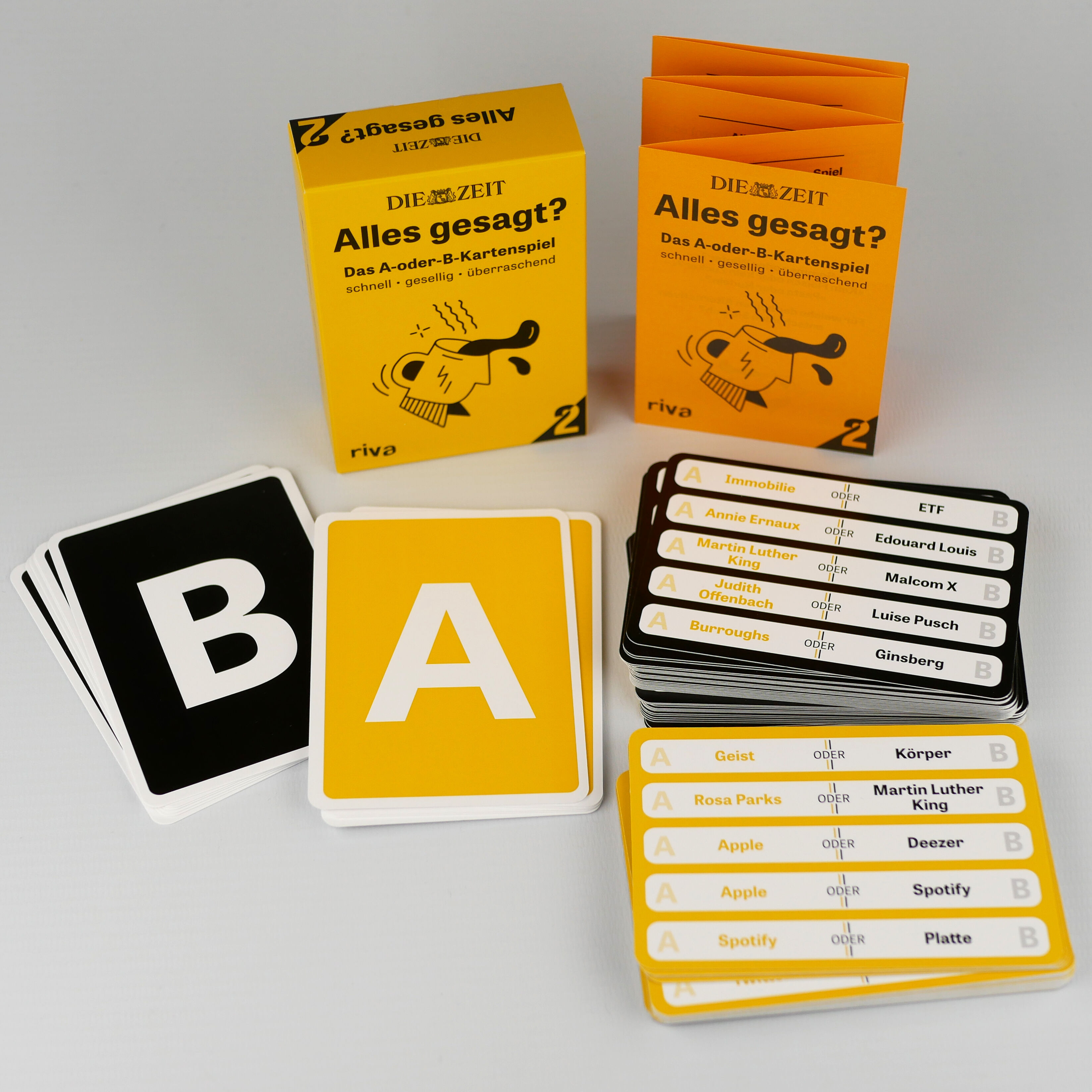 Lieber Zeitung ohne Internet oder Internet ohne Zeitung? Lieber vegetarisch oder vegan? Wissen oder glauben?Endlich kommt Teil 2 des beliebten A-oder-B-Spiels aus dem erfolgreichen »ZEIT«-Podcast »Alles gesagt?«. Dieses schnelle Kartenspiel bietet über 600 neu...