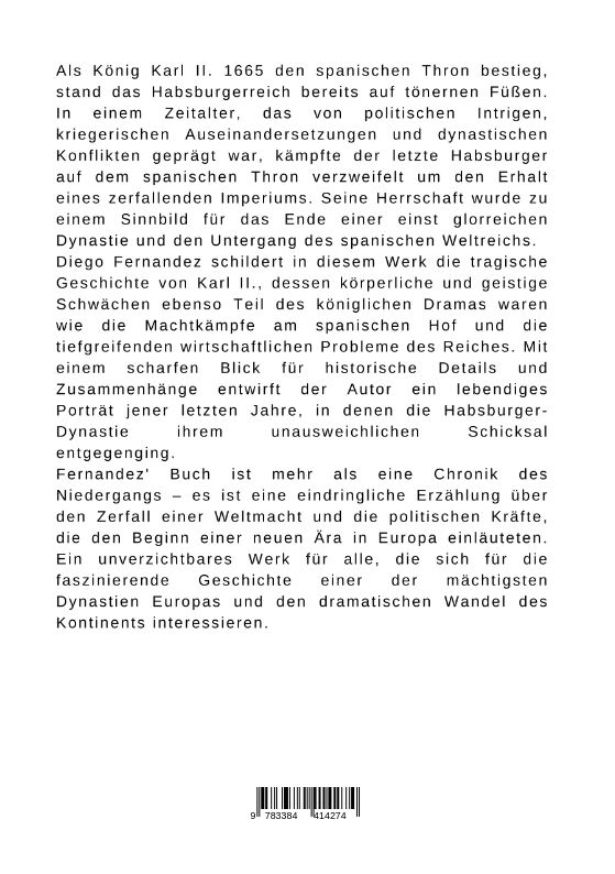 Als König Karl II. 1665 den spanischen Thron bestieg, stand das Habsburgerreich bereits auf tönernen Füßen. In einem Zeitalter, das von politischen Intrigen, kriegerischen Auseinandersetzungen und dynastischen Konflikten geprägt war, kämpfte der letzte Habsbur...