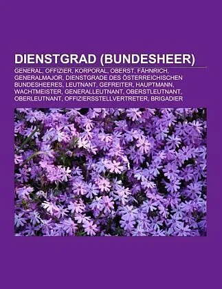 Quelle: Wikipedia. Seiten: 35. Kapitel: General, Offizier, Korporal, Oberst, Fähnrich, Generalmajor, Dienstgrade des österreichischen Bundesheeres, Leutnant, Gefreiter, Hauptmann, Wachtmeister, Generalleutnant, Oberstleutnant, Oberleutnant, Offiziersstellvertr...