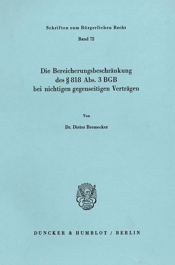 Die Bereicherungsbeschränkung des § 818 Abs. 3 BGB bei nichtigen gegenseitigen Verträgen.