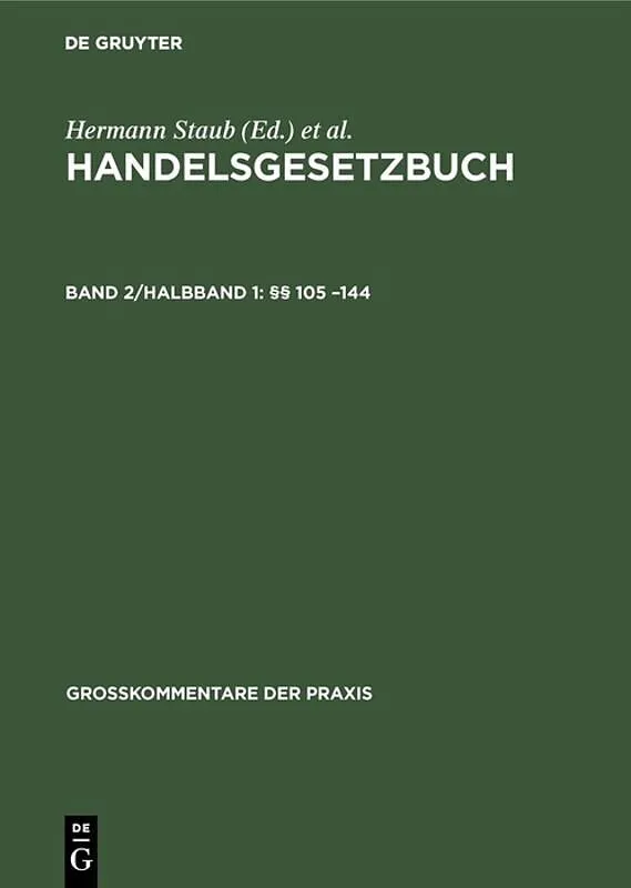 Keine ausführliche Beschreibung für " 105 -144" verfügbar. Frontmatter -- Inhaltsverzeichnis des zweiten Bandes -- Zweites Buch. Handelsgesellschaften und stille Gesellschaft -- Vorbemerkungen -- Erster Abschnitt: Offene Handelsgesellschaft -- Erster...