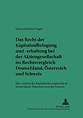 Diese Arbeit untersucht das Recht der Kapitalaufbringung und -erhaltung bei der Aktiengesellschaft und stellt einen Rechtsvergleich zwischen Deutschland, Österreich und der Schweiz an. Im Mittelpunkt steht zunächst die Darstellung und Analyse der Regelungen de...