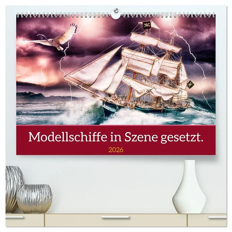 Modellschiffe in Szene gesetzt. (hochwertiger Premium Wandkalender 2026 DIN A2 quer), Kunstdruck in Hochglanz