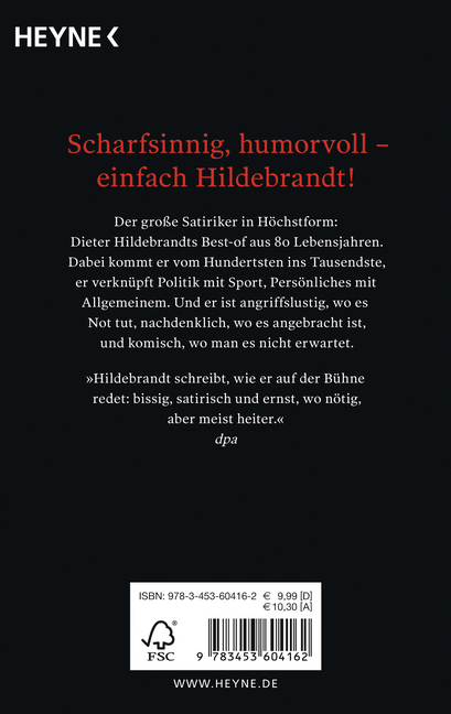 Der große Satiriker in Höchstform: Hildebrandt kommt vom Hundertsten ins Tausendste, er verknüpft Politik mit Sport, Persönliches mit Allgemeinem. Und er ist angriffslustig, wo es Not tut, nachdenklich, wo es angebracht ist, und komisch, wo man es nicht erwart...