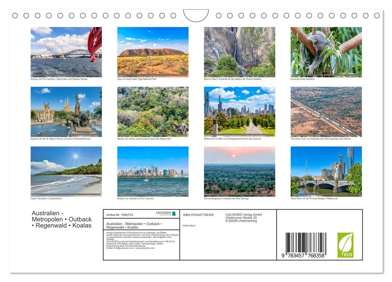 Australien - Metropolen Outback Regenwald Koalas (Wandkalender 2026 DIN A4 quer), CALVENDO Monatskalender