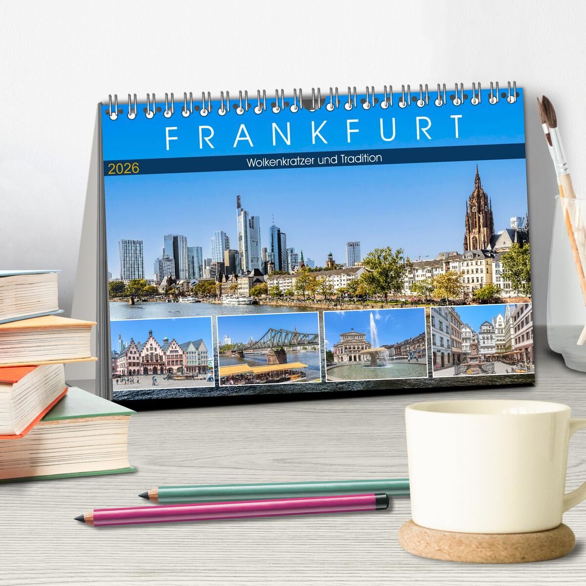 Frankfurt - Wolkenkratzer und Tradition (Tischkalender 2026 DIN A5 quer), CALVENDO Monatskalender