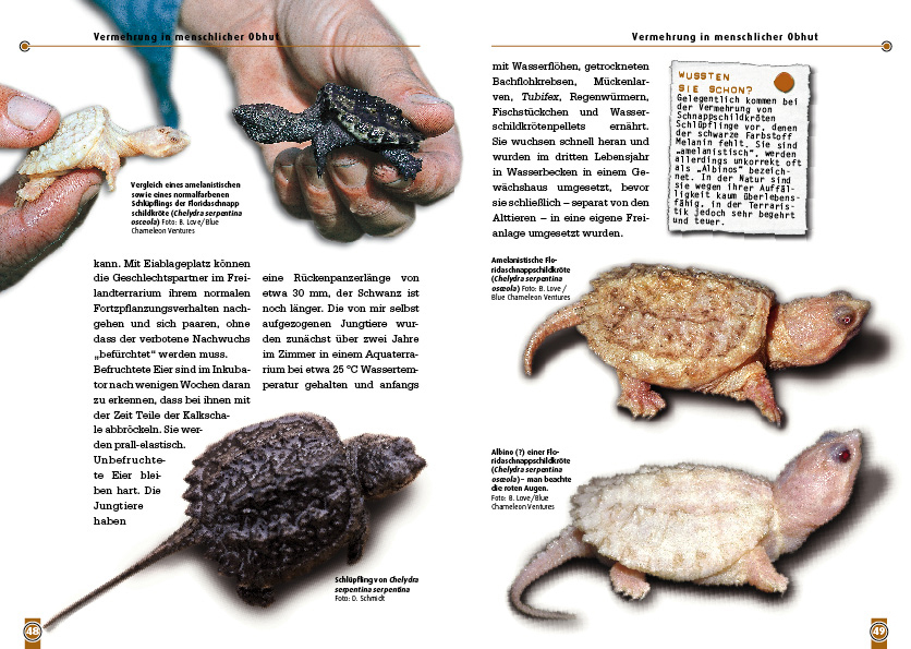 Die Schnappschildkröte und ihre Verwandten gehören zweifellos zu den bemerkenswertesten Reptilien der Neuen Welt. Mit einer Länge von bis zu 45 cm und einem Gewicht von bis zu 16 kg ist sie wahrlich nichts für Anfänger. Damit alles gut geht, gibt der langjähri...