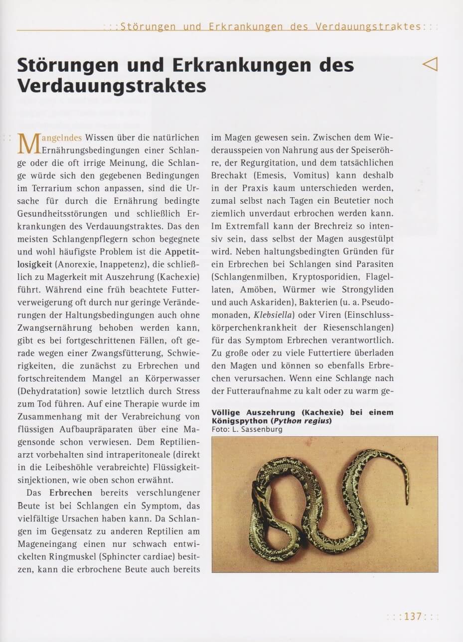 Eine ausgewogene und gesunde Ernährung unserer Pfleglinge ist für die erfolgreiche Haltung und Nachzucht von entscheidender Bedeutung. Gerade über die Ernährung von Schlangen aber war bisher allgemein nicht allzu viel bekannt. Der langjährige, bekannte Schlang...