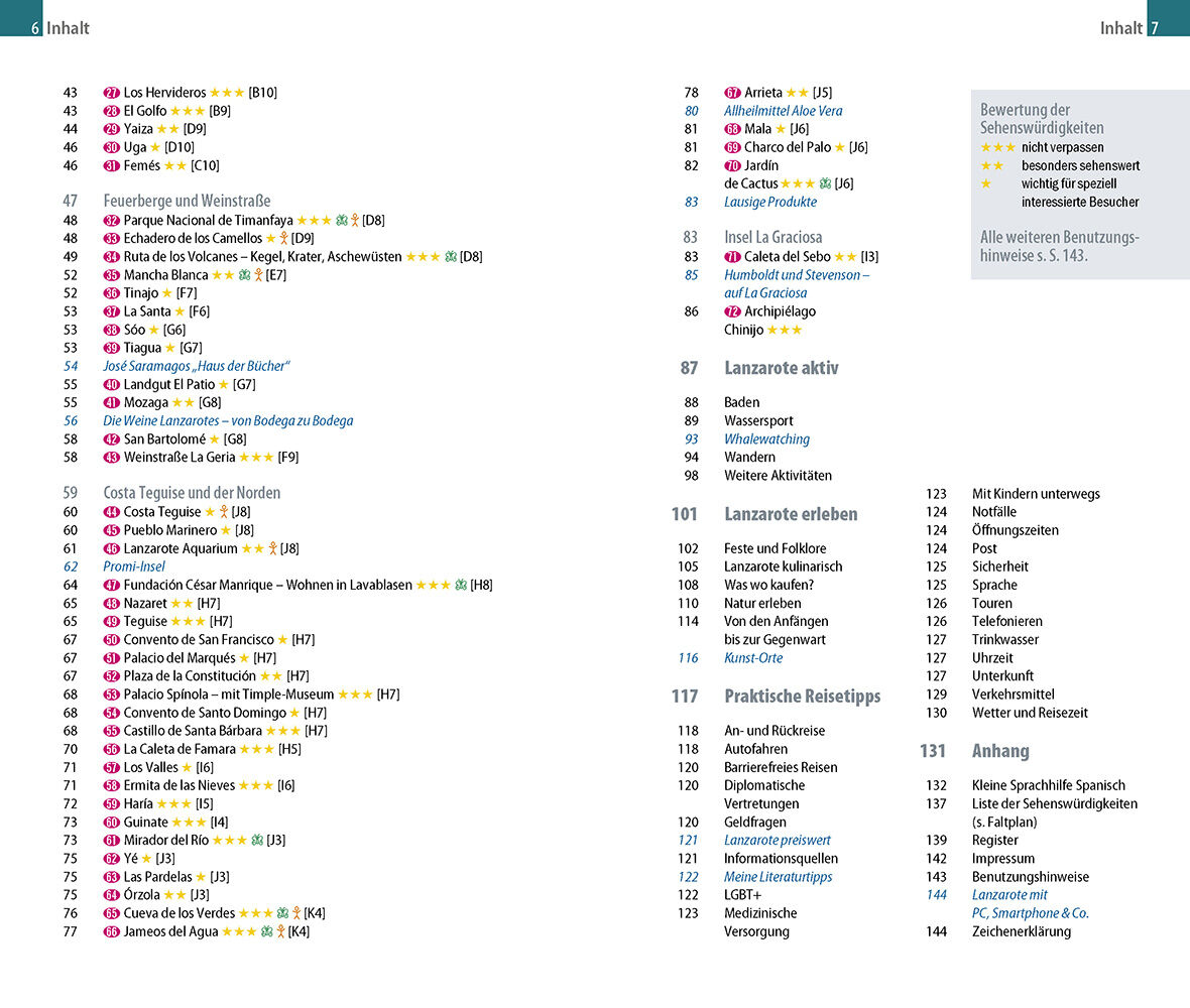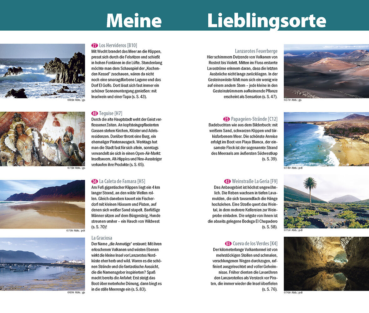 Lanzarote hat viele Gesichter. Außer herrlichen Stränden entdeckt man jenseits der Ferienorte grün aufleuchtende Palmenoasen, stille Dörfer mit kalkweißen Häusern, spektakuläre Landschaftskunstwerke von César Manrique, geheimnisvolle Höhlen wie die Jameos del...