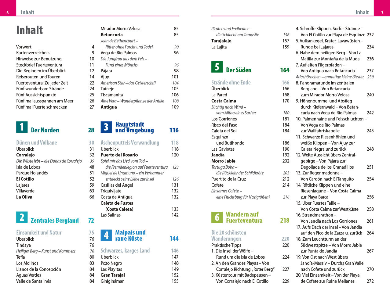 Vorwort 4 Kartenverzeichnis 9 Hinweise zur Benutzung 10 Steckbrief Fuerteventura 11 Die Regionen im Überblick 12 Reiserouten und Touren 14 Fuerteventura: Zu jeder Zeit 22 Fünf wunderbare Strände 24 Fünf Aussichtspunkte 25 Fünf mal ausspannen am Meer 26 Fünf mal Fuerte schmecken 27 Der Norden 28 Dünen und Vulkane 30 Überblick 31 Corralejo 32 Die Wüste lebt die Dunas de Corralejo 39 Isla de Lobos 48 Parque Holandés 51 El Cotillo 52 Lajares 59 Villaverde 63 La Oliva 66 Zentrales Bergland 72 Einsamkeit und Natur 75 Überblick 76 Tindaya 76 Heiliger Berg Kunst und Kommerz 78 Tefía 80 Los Molinos 83 Llanos de la Concepción 84 Aguas Verdes 84 Valle de Santa Inés 84 Mirador Morro Velosa 85 Betancuria 85 Jean de Béthencourt Ritter ohne Furcht und Tadel 90 Vega de Río Palmas 96 Die Jungfrau aus dem Fels Fund eines Mönchs 96 Pájara 98 Ajuy 101 American Star das Geisterschiff 104 Tuineje 105 Tiscamanita 106 Aloe Vera Wunderpflanze der Antike 108 Antigua 109 Hauptstadt und Umgebung 116 Aschenputtels Verwandlung 118 Überblick 118 Puerto del Rosario 120 Spiel mir das Lied vom Tod die Fremdenlegion auf Fuerteventura 123 Miguel de Unamuno ein Verbannter entdeckt seine Liebe zur Insel 126 Casillas del Ángel 131 Triquivijate 132 Costa de Antigua 132 Caleta de Fustes (Costa Caleta) 133 Las Salinas 142 Malpaís und raue Küste 144 Schwarzes, karges Land 146 Überblick 147 Pozo Negro 148 Las Playitas 149 Gran Tarajal 152 Giniginámar 155 Piraten und Freibeuter die Schlacht am Tamasite 156 Tarajalejo 157 La Lajita 159 Der Süden 164 Strände ohne Ende 166 Überblick 166 La Pared 168 Costa Calma 170 Süchtig nach Wind vom Alltag eines Surfers 180 Los Gorriones 181 Risco del Paso 184 Caleta del Sol 184 Esquinzo und Butihondo 186 Las Gaviotas 190 Jandía 192 Morro Jable 202 Tortuga Boba die Rückkehr der Schildkröte 203 Puertito de la Cruz 212 Cofete 214 Einsames Cofete eine Fluchtburg für Nazigrößen? 216 Wandern auf Fuerteventura 218 Die 20 schönsten Wanderungen 220 Praktische Tipps 220 Die Insel der Wölfe Rund um die Isla de Lobos 224 An den Grandes Playas Von Corralejo Richtung Roter Berg 227 Küstentour mit Badepausen Von Corralejo nach El Cotillo 229 Schroffe Klippen, Surfer-Strände Von El Cotillo zur Playa de Esquinzo 232 Vulkankegel, Krater, Lavawüsten Runde bei Lajares 234 Nahe dem heiligen Berg Von La Matilla zur Montaña de la Muda 236 Auf alten Pilgerpfaden Von Antigua nach Betancuria 237 Atlashörnchen anmutige kleine Biester 239 Panoramarunde im zentralen Bergland Von Betancuria zum Mirador Morro Velosa 240 Höhenbummel und Abstieg durch Kiefernwald Von Betancuria nach Vega de Río Palmas 242 Palmenhaine und Felsschluchten Von Vega de Río Palmas zur Wallfahrtskapelle 245 Schwarze Riesenhöhlen und weiße Klippen Von Ajuy zur Caleta Negra und zurück 248 Weite Aussicht übers Zentralgebirge Von Pájara zur Degollada de los Granadillos 251 Zur Regenmadonna Von Cardón nach El Tanquito 254 Rötliche Klippen und eine Riesenlagune Von Costa Calma zur Playa Barca 256 Über Fuertes Taille Von Costa Calma zur Westküste 258 Strandmarathon Von Jandía nach Los Gorriones 261 Aufs Dach der Insel Von Jandía auf den Pico de la Zarza u. zurück 264 Zum Leuchtturm an der Südwestspitze Von Morro Jable zur Punta de Jandía 267 Von Ost nach West übers Jandía-Massiv Durchs Gran Valle nach Cofete und zurück 270 Viel Einsamkeit Von der Playa de Cofete zur Ruine Melianes 272 Ausflug nach Lanzarote 274 Insel der Feuerberge 277 Über Yaiza zur Weinstraße 278 Nationalpark Timanfaya 279 Wilde Südwestküste 281 Finale 282 Praktische Tipps 283 Praktische Reisetipps AZ 284 Anreise 286 Autofahren 288 Barrierefreies Reisen 291 Camping 291 Eink aufen 291 Ein- und Ausreisebestimmungen 294 Elektrizität 295 Essen und Trinken 295 Vom Winde gewürzt köstlicher Käse 299 Feier tage, Feste und Events 301 Geld 301 Gesundheit und Hygiene 302 Mit Haustier unterwegs 304 …