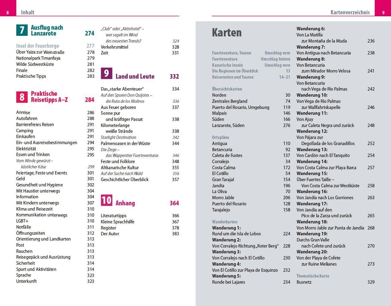 Autor Dieter Schulze kennt die schönsten Orte der Insel, wie die Inselhauptstadt Betancuria mit weißen, dicht aneinander gereihten Häusern, die sich vom Talgrund terrassenförmig die Hänge hinaufziehen, oder das Fischerdorf Ajuy mit seinem Klippenweg hinauf zur Caleta Negra, einem der spektakulärsten Plätze der Insel. Sein Reiseführer lädt ein zu einer Reise von Norden nach Süden, von Dünen und Vulkanen über das zentrale Bergland, die Hauptstadt Puerto del Rosario, Malpaís und seine raue Küste bis zur Costa Calma im Süden. In 20 Wanderungen zeigt er, wie man die Insel zu Fuß entdeckt, und ein eigenes Kapitel widmet sich einer Tagestour zur Nachbarinsel Lanzarote.